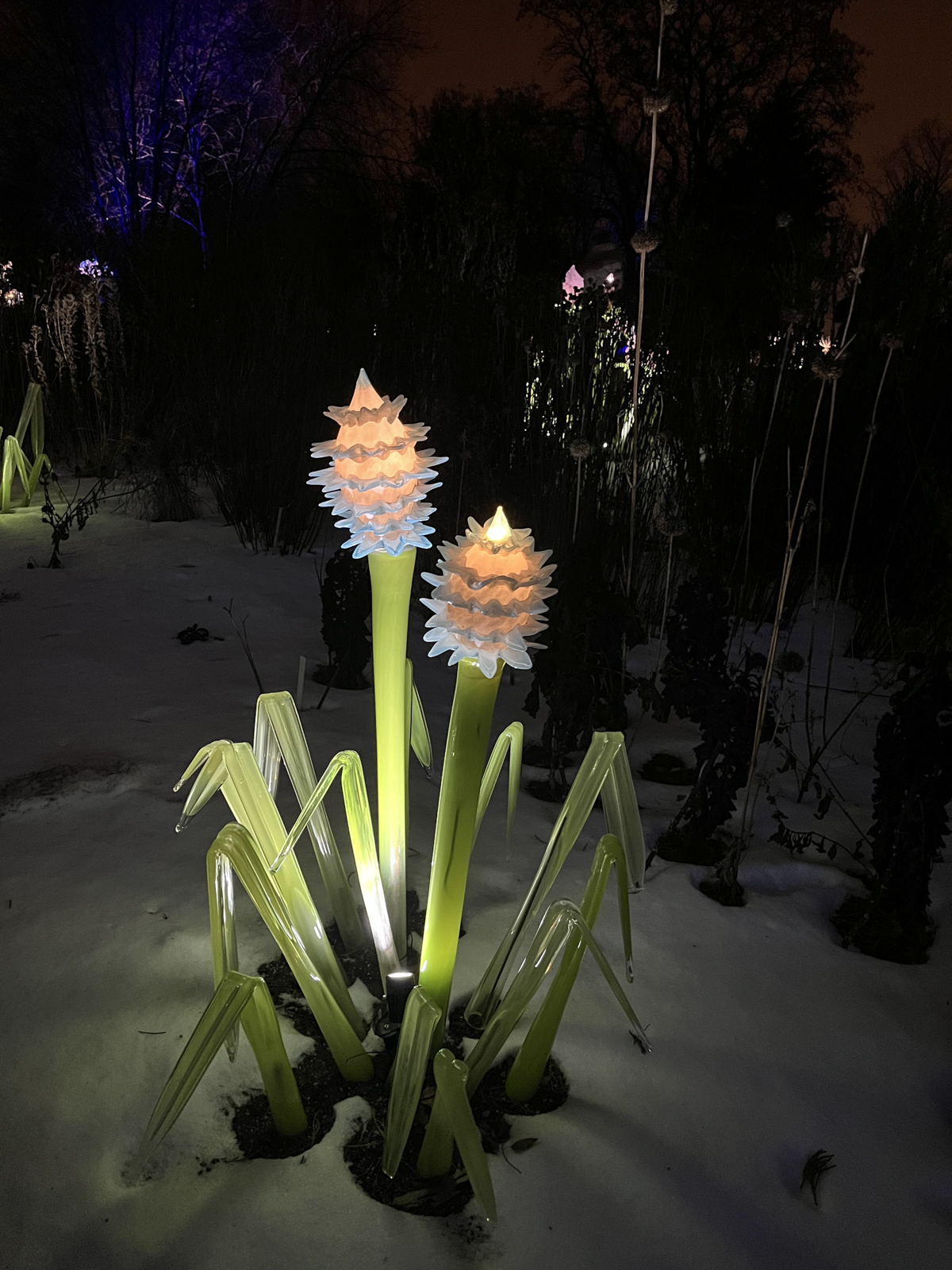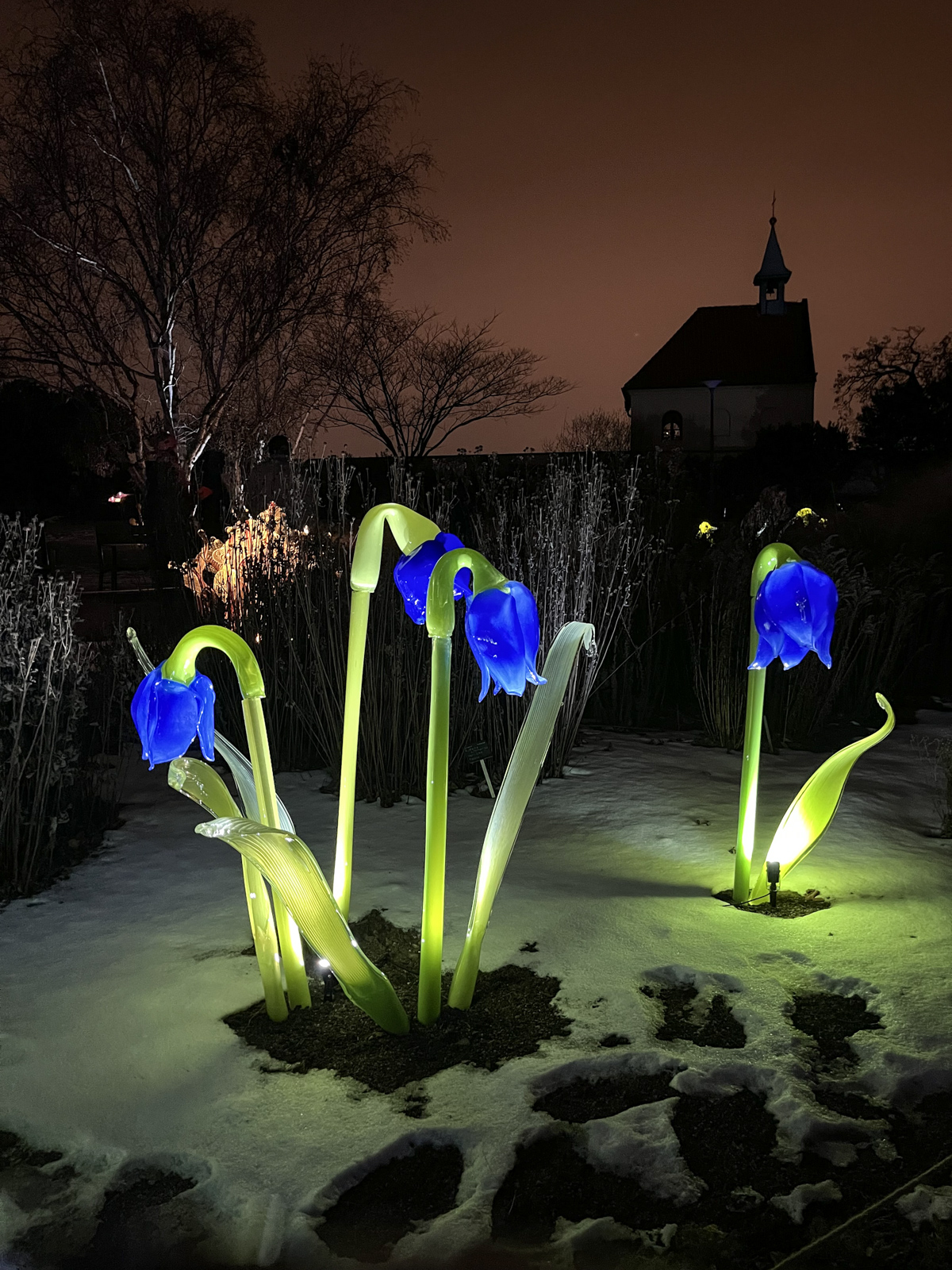 Dne 22. 1. 2026 jsme se vydali do pražské botanické zahrady na výstavu s názvem Křišťálová zahrada. Na výstavišti jsme mohli vidět jak živé rostliny, tak i skleněné exponáty, které byly krásně osvětlené různými barvami. Barevná světla vytvářela zajímavou atmosféru a celá zahrada díky nim působila kouzelně. I když byla venku zima, prohlídku jsme si užili a dlouho jsme se zastavovali u jednotlivých exponátů.