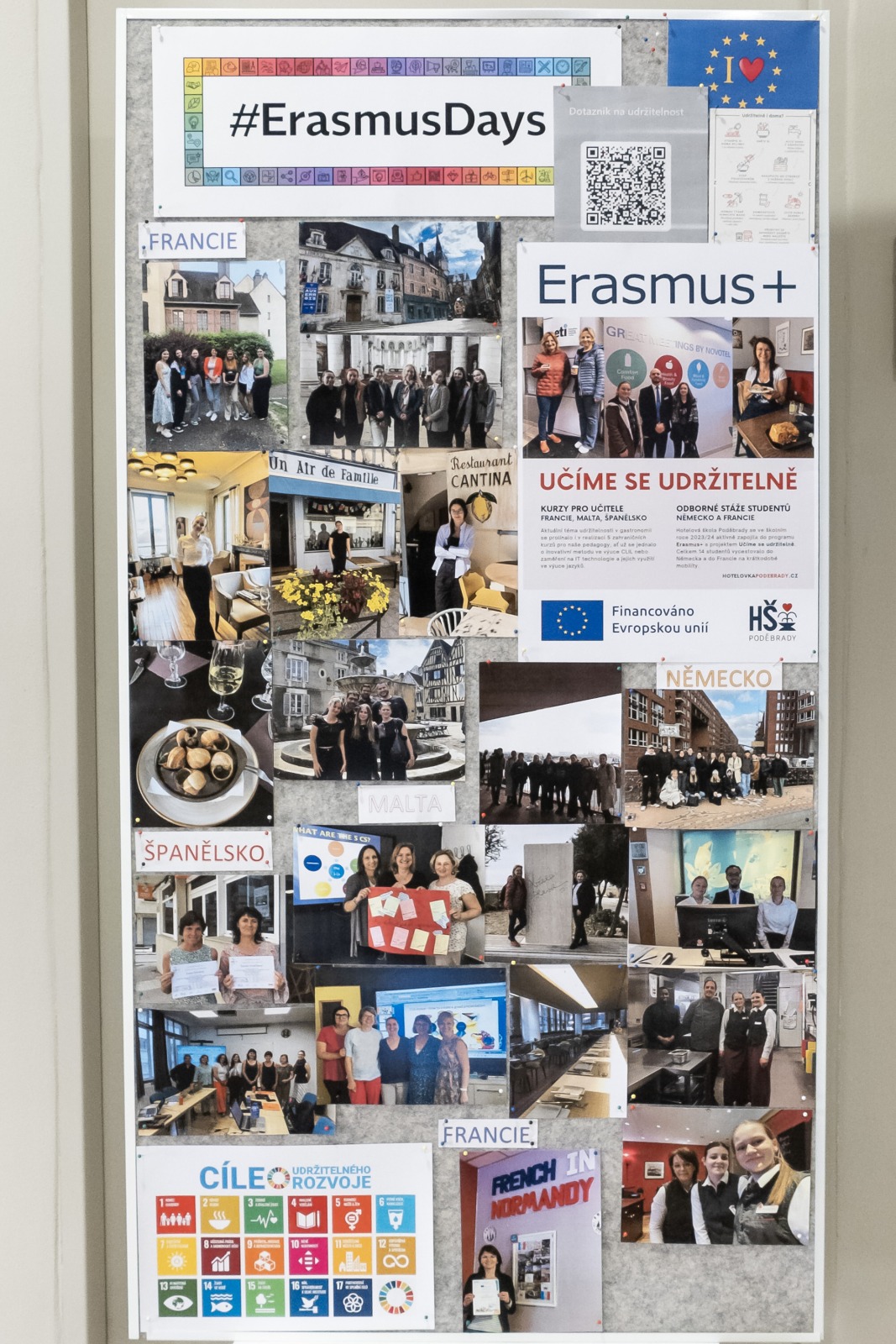 Hotelová škola Poděbrady se zúčastnila projektu Erasmus Days, kde měli žáci 2. a 3. ročníku příležitost vyslechnout si přednášku na téma udržitelnosti, která je v současné době velmi důležitá. Zároveň studenti, kteří se zúčastnili projektu Erasmus+ ve francouzském Auxerre a německém Hamburku, společně s žáky, co absolvovali praxi ve Francii, připravili prezentace, ve kterých se podělili o své postřehy a zkušenosti. Tyto prezentace byly velmi inspirativní a poskytly cenné informace o práci v zahraničí a získávání nových dovedností.