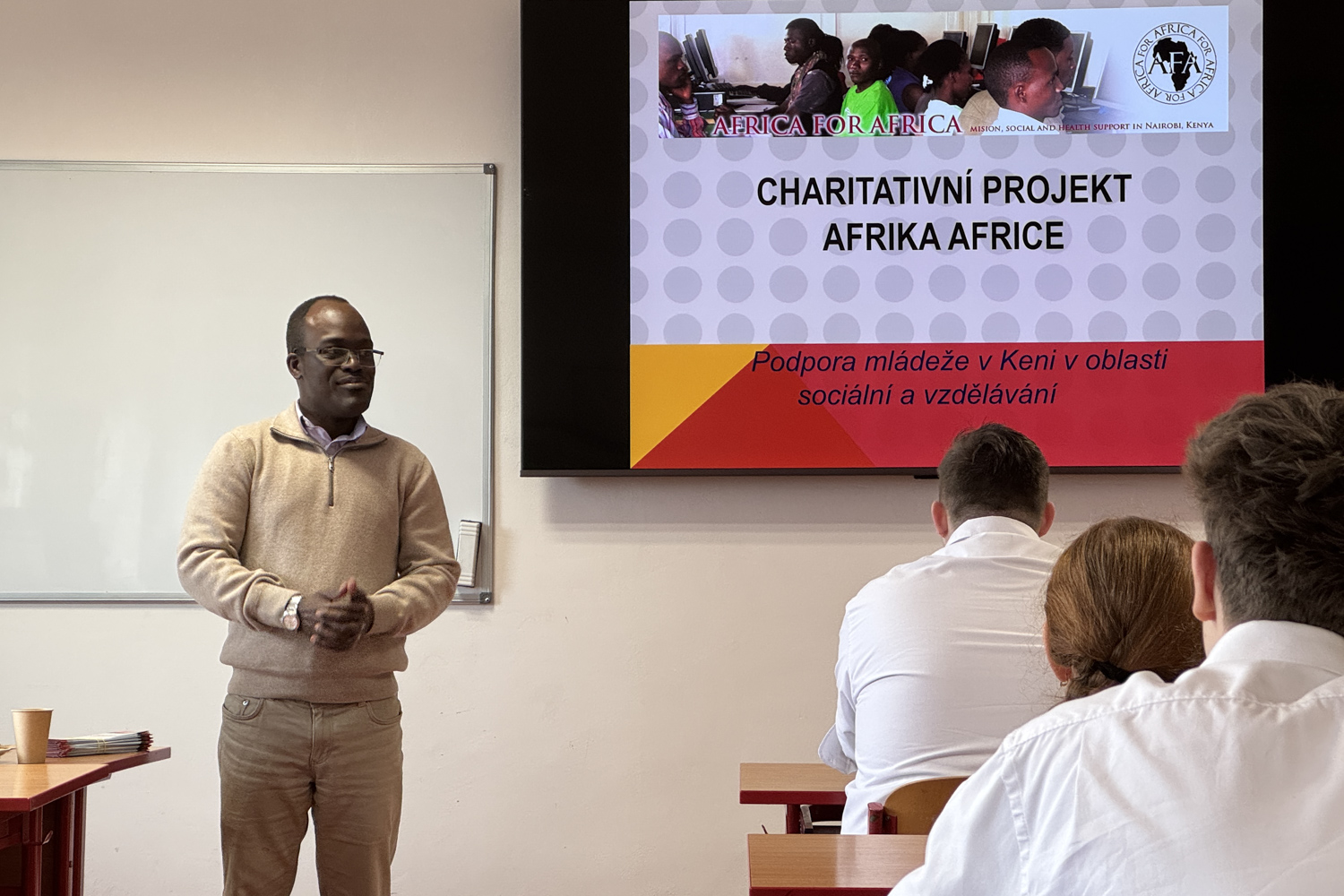 V úterý 25. února 2025 přivítala Hotelová škola Poděbrady vzácného hosta – Dr. Phanuela Oswetu z Keni, odborníka na mezinárodní rozvoj a lidská práva, a především zakladatele projektu Afrika Africe, který pomáhá dětem a mládeži pocházejícím ze slumů dostat se ke vzdělání.