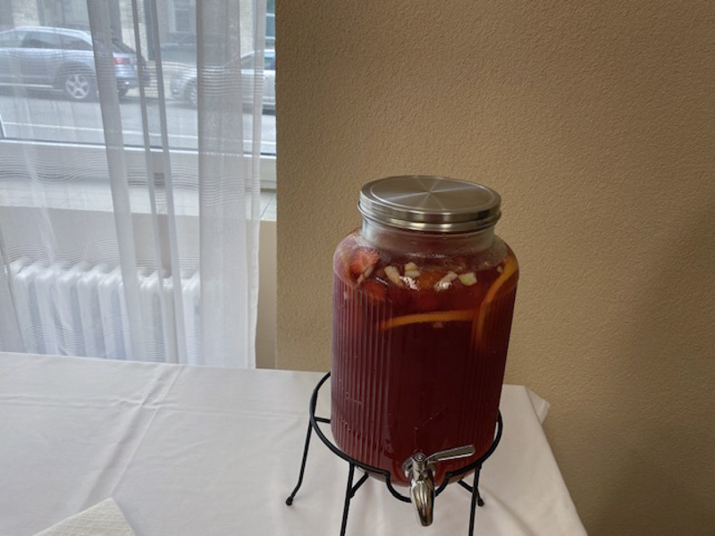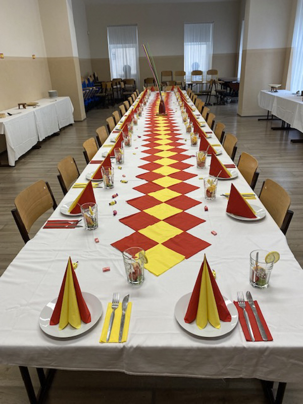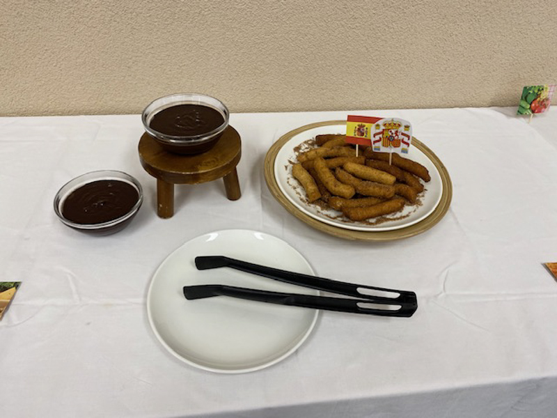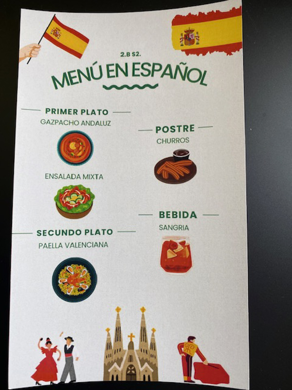 V rámci projektu Komunikace s hostem v cizím jazyce jsme připravili pro svoji třídní učitelku a španělštinářku v jedné osobě Mgr. Pavlínu Frančíkovou tradiční španělská jídla: gazpacho, studenou polévku ideální na léto, ensalada mixta a ensaladilla rusa, paella, slavný pokrm z rýže s krevetami a kuřetem, empanadillas, galicijské taštičky plněné masovou a sýrovou směsí, a churros, lahodný smažený dezert podávaný s horkou čokoládou. Samozřejmě nechyběla ani nealkoholická sangría a španělská hudba.