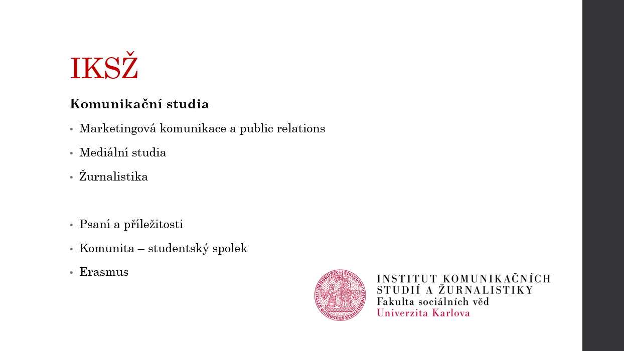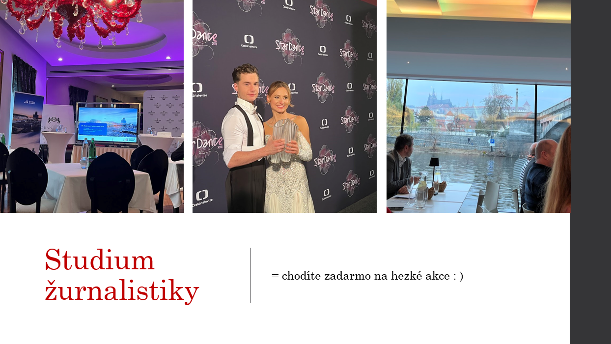 Z Technické univerzity v Liberci přijeli obor management služeb prezentovat Kryštof Karban a Vendula Součková. Žurnalistiku na Fakultě sociálních věd Univerzity Karlovy představila Eliška Sýkorová a zástupcem Fakulty financí a účetnictví Vysoké školy ekonomické byl Miloš Hotovec.