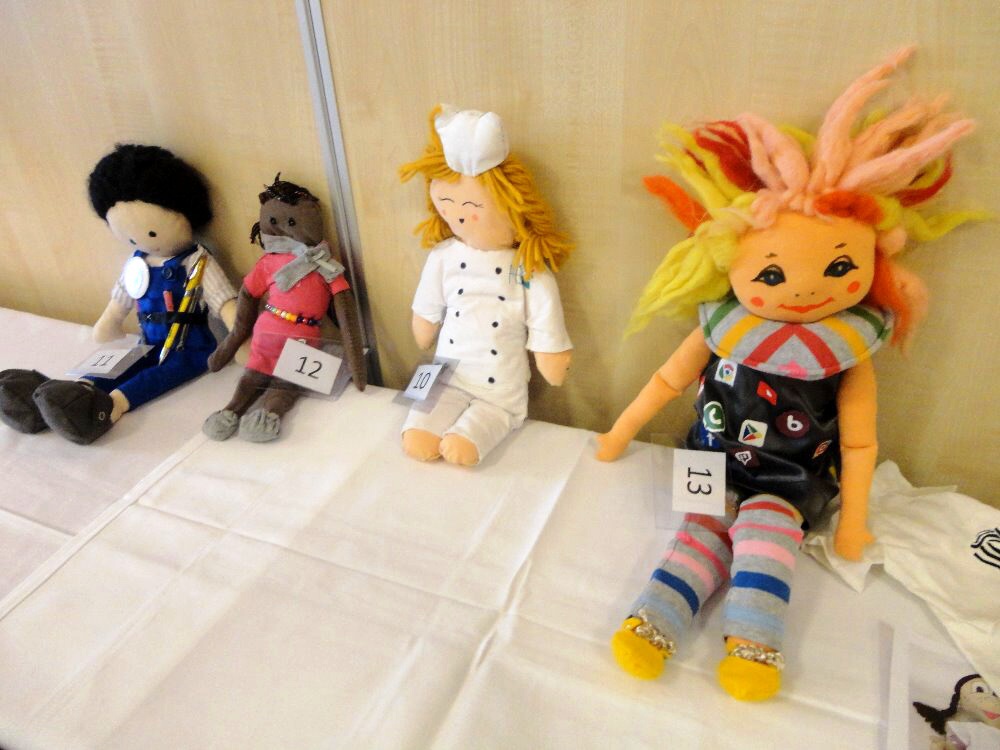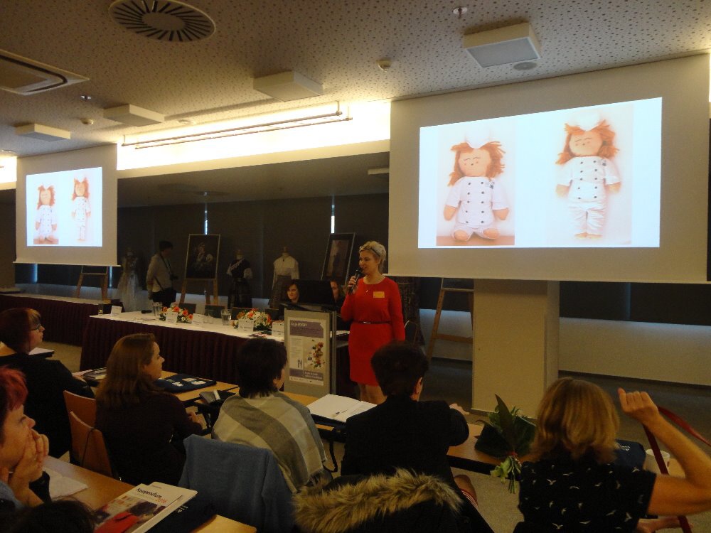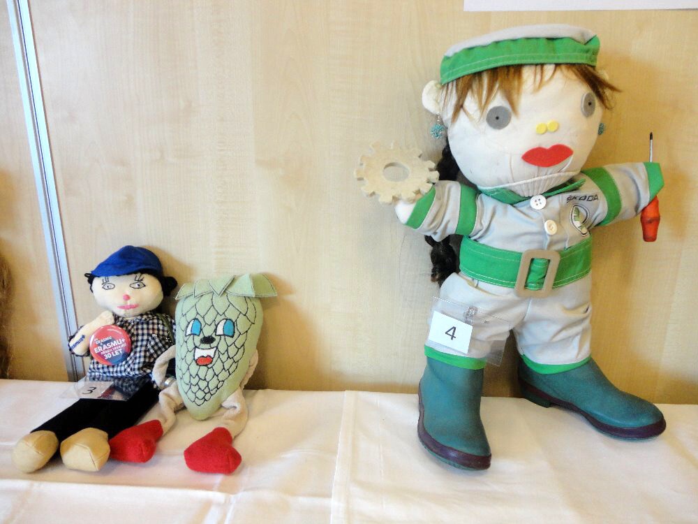 ... toho sice moc nenamluví, na výuku nedochází, ale dres kód naší školy dodržuje. A to tak, že rondon vůbec nesvléká. Asi tuší, že jí to v něm sluší. I ona bydlí na domově mládeže, a to přímo v kanceláři vychovatelů. Ano, tušíte správně, nejmenší hotelovačka patří do skupiny panenek, které pod vedením paní vychovatelky Jany Šimákové vznikají právě na domově mládeže. Ta, která se 14. a 15. listopadu vypravila do Českých Budějovic na výstavu podobných parťáků, dokonce pozdravila účastníky diseminační konference, pořádané u příležitosti 30. výročí programu Erasmus+, z velkoplošné obrazovky.