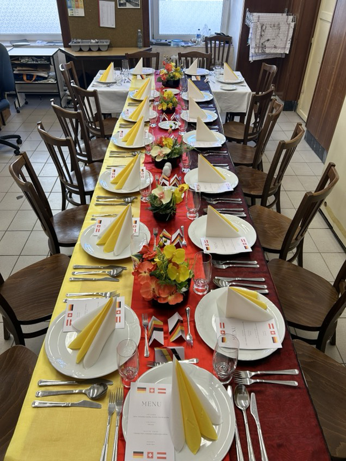 Ze začátku bylo složité vymyslet předkrm, polévku, hlavní chod a dezert tak, aby všechny chutě ladily a zapadaly do německé kuchyně, ale měli jsme podporu a nápady od našich vyučujících, kteří nám pomohli. Naším úkolem nebyla pouze příprava jídla a pití, ale také slavnostní tabule. K tomu jsme museli vymyslet a vytvořit dekorace a výzdobu. Dost jsme se toho báli, ale nakonec byl průběh celého dne velice úspěšný.