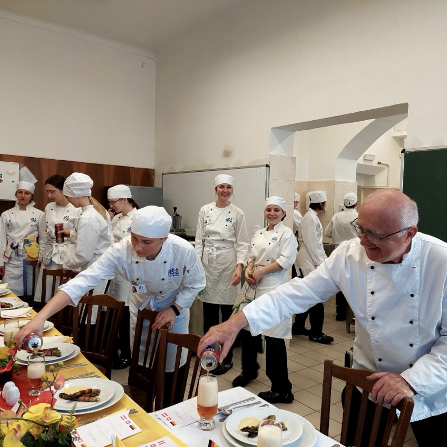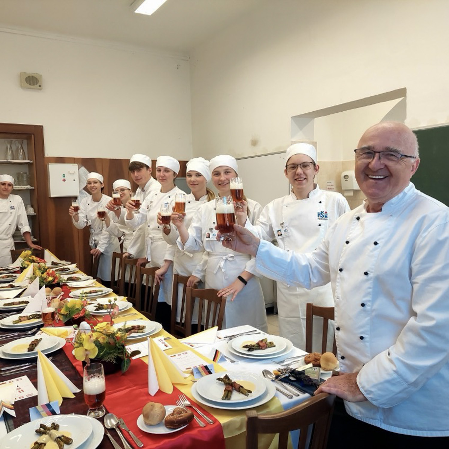 Dne 13. 5. 2025 jsme se rozhodli vyzkoušet pravé německé menu, za jehož přípravou stál náš odborný vyučující Zdeněk Lebeda a naše paní učitelka němčiny Daniela Valentová. Všechno jsme si museli pečlivě promyslet dopředu – není to jen tak, přijít a uvařit. Chtěli jsme, aby se nám vše podařilo a bavilo nás to, a to se nakonec povedlo.