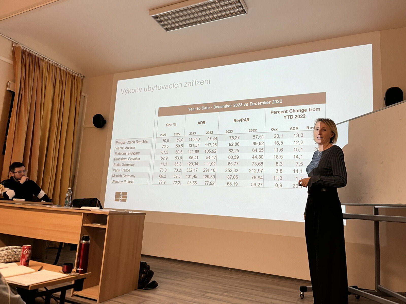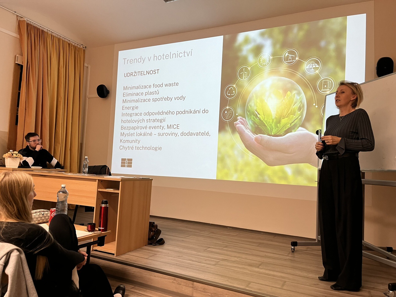 V úterý 12. listopadu měli studenti 4. ročníku se specializací hotelový management možnost vyslechnout si přednášku o moderních trendech v hotelnictví od paní ředitelky AHR (Asociace hotelů a restaurací České republiky) Kláry Stárkové Zachariášové.