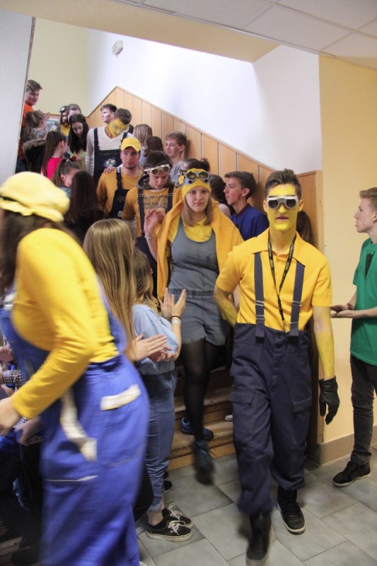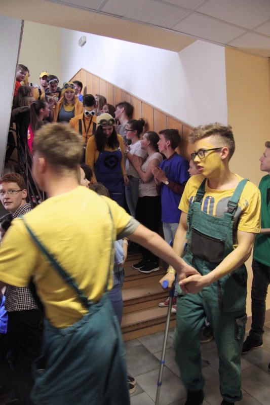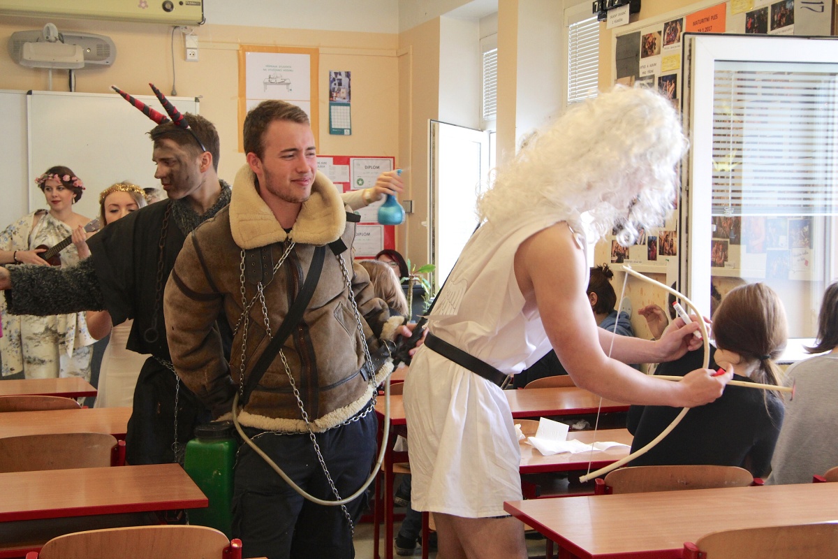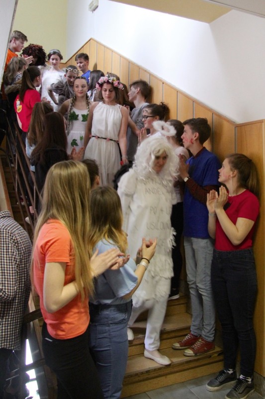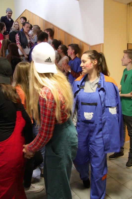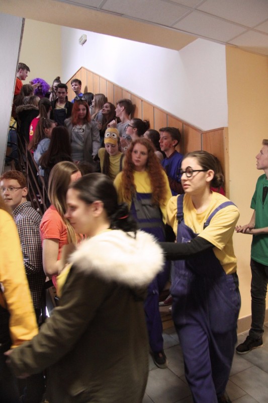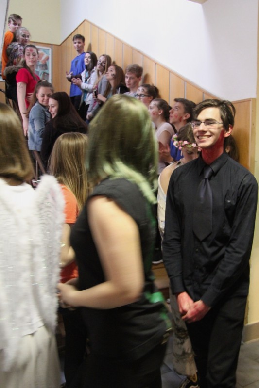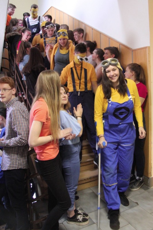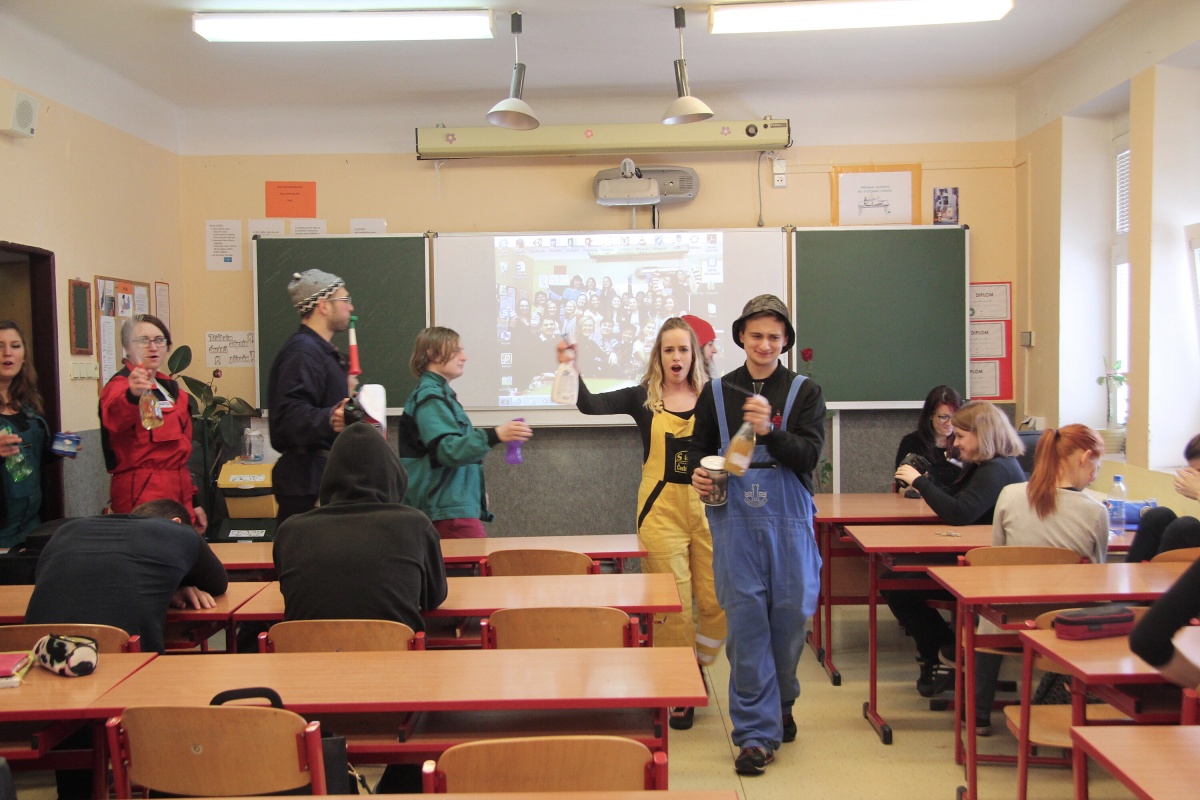 V pátek 28. dubna 2017 se uskutečnilo tradiční poslední zvonění. Vše začalo už ráno, kdy maturanti chodili po škole. Každá třída měla kostýmy podle svého. Mohli jsme vidět popeláře, mimoně a Nebe, peklo, ráj. Nechyběly ani písně, které si maturitní třídy pro ostatní připravily. Po 11. hodině se podél schodů vytvořil špalír a vykopávání mohlo začít. Paní ředitelka vybavena svými špičatými botami „vykopla“ všechny maturanty. Pokračovalo se na kolonádu, kde odstartovalo překvapení hotelovky, a to taneční Flash mob.