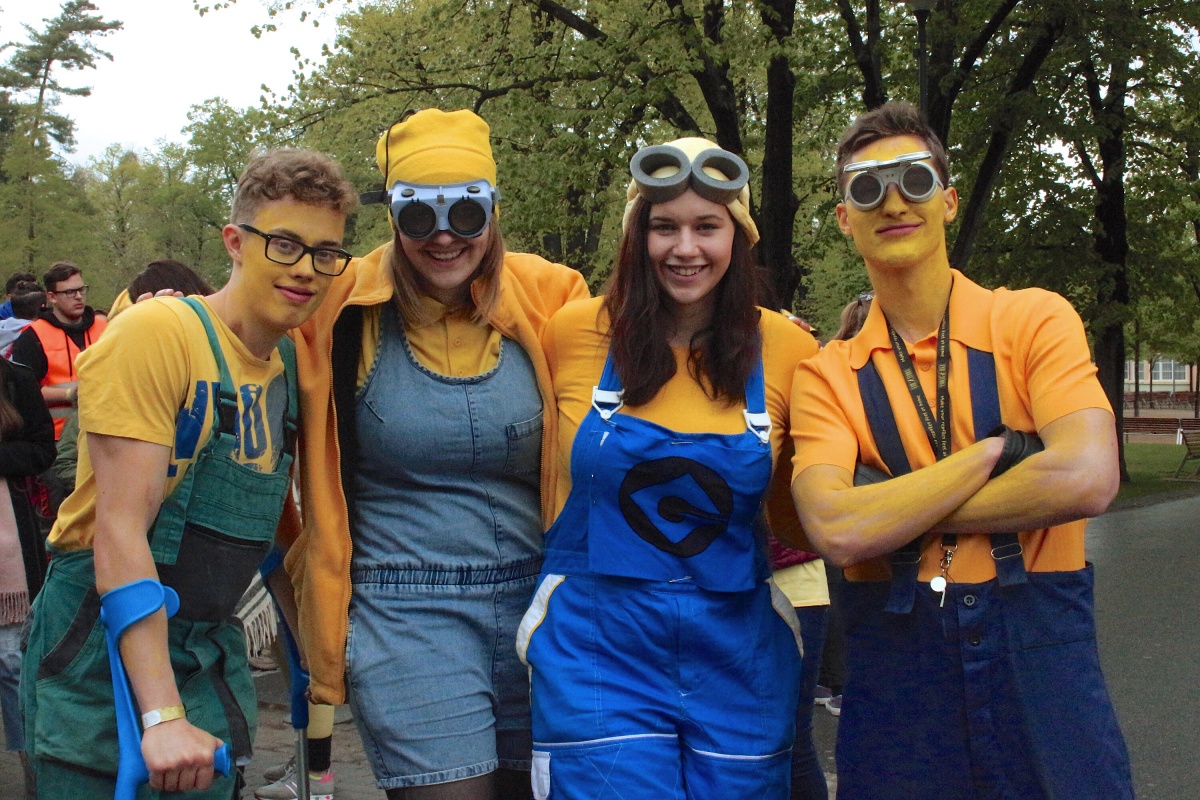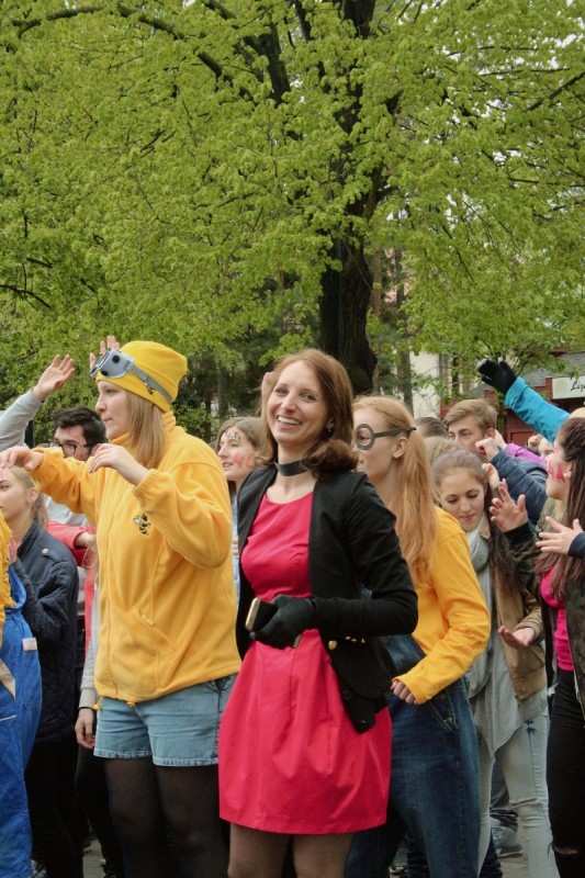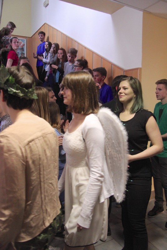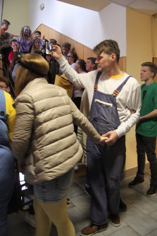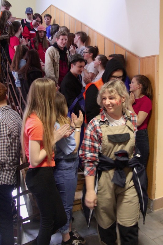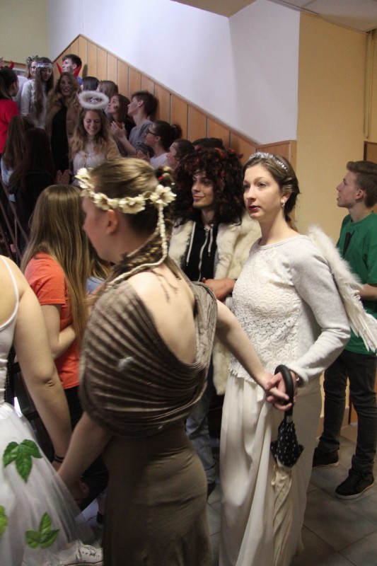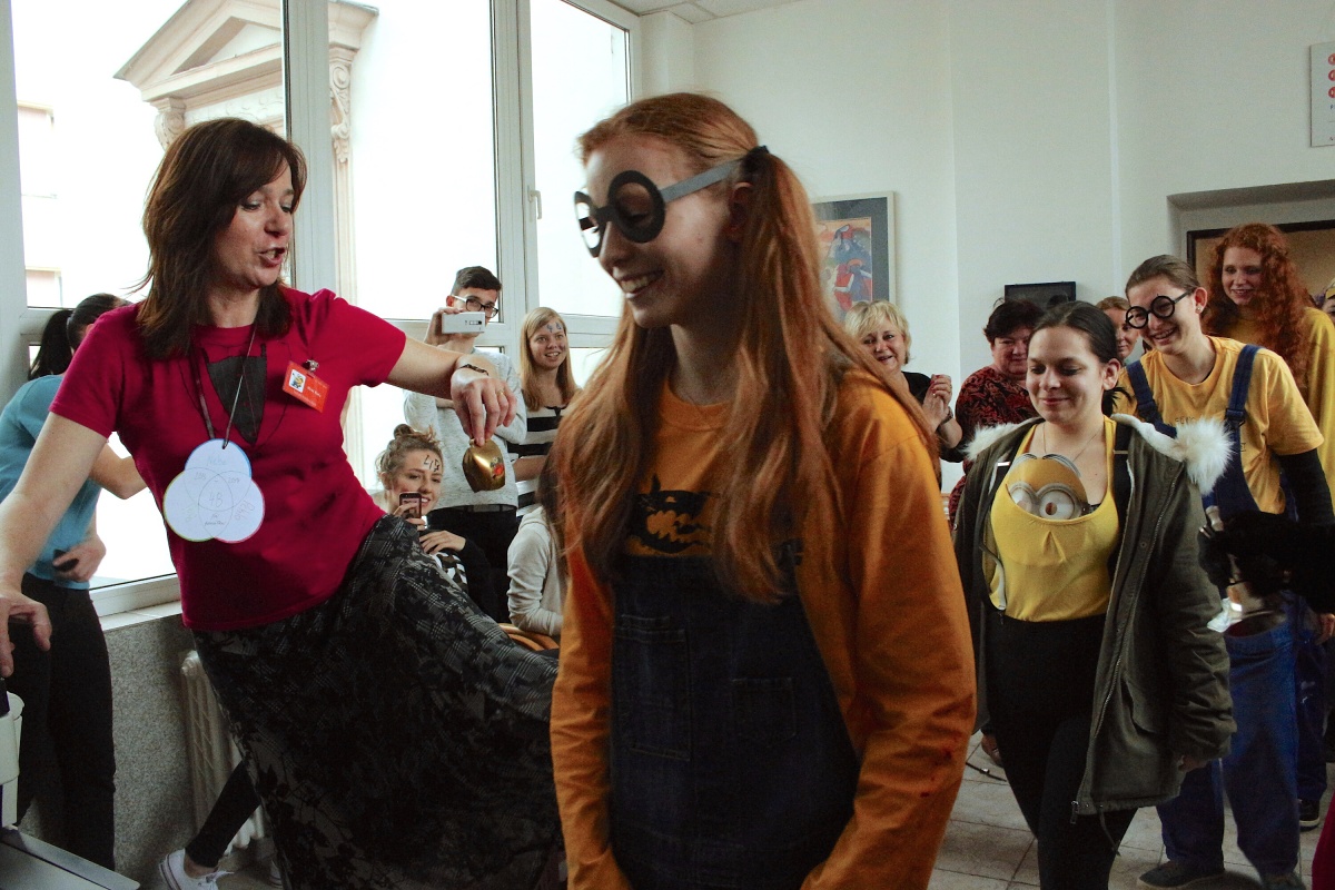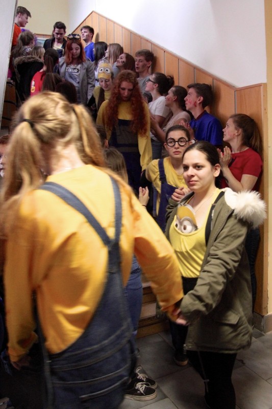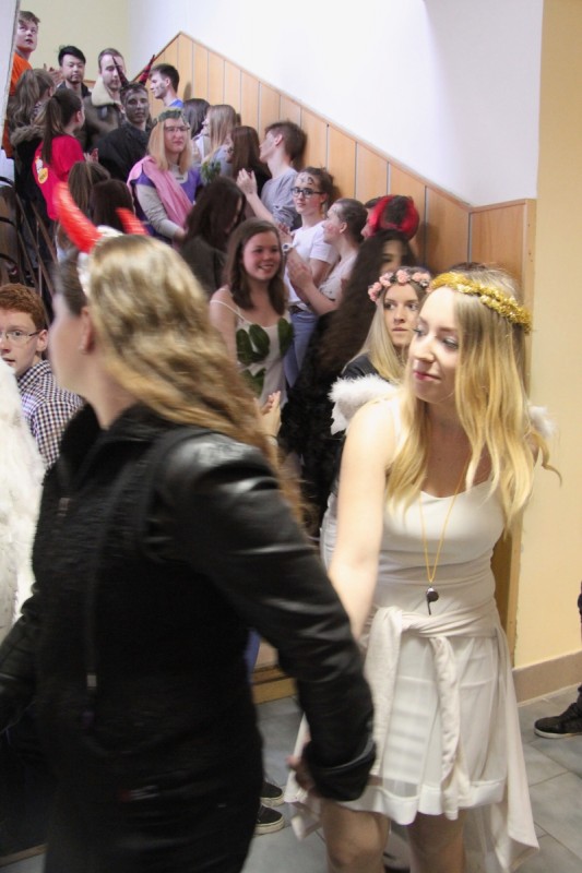V pátek 28. dubna 2017 se uskutečnilo tradiční poslední zvonění. Vše začalo už ráno, kdy maturanti chodili po škole. Každá třída měla kostýmy podle svého. Mohli jsme vidět popeláře, mimoně a Nebe, peklo, ráj. Nechyběly ani písně, které si maturitní třídy pro ostatní připravily. Po 11. hodině se podél schodů vytvořil špalír a vykopávání mohlo začít. Paní ředitelka vybavena svými špičatými botami „vykopla“ všechny maturanty. Pokračovalo se na kolonádu, kde odstartovalo překvapení hotelovky, a to taneční Flash mob.