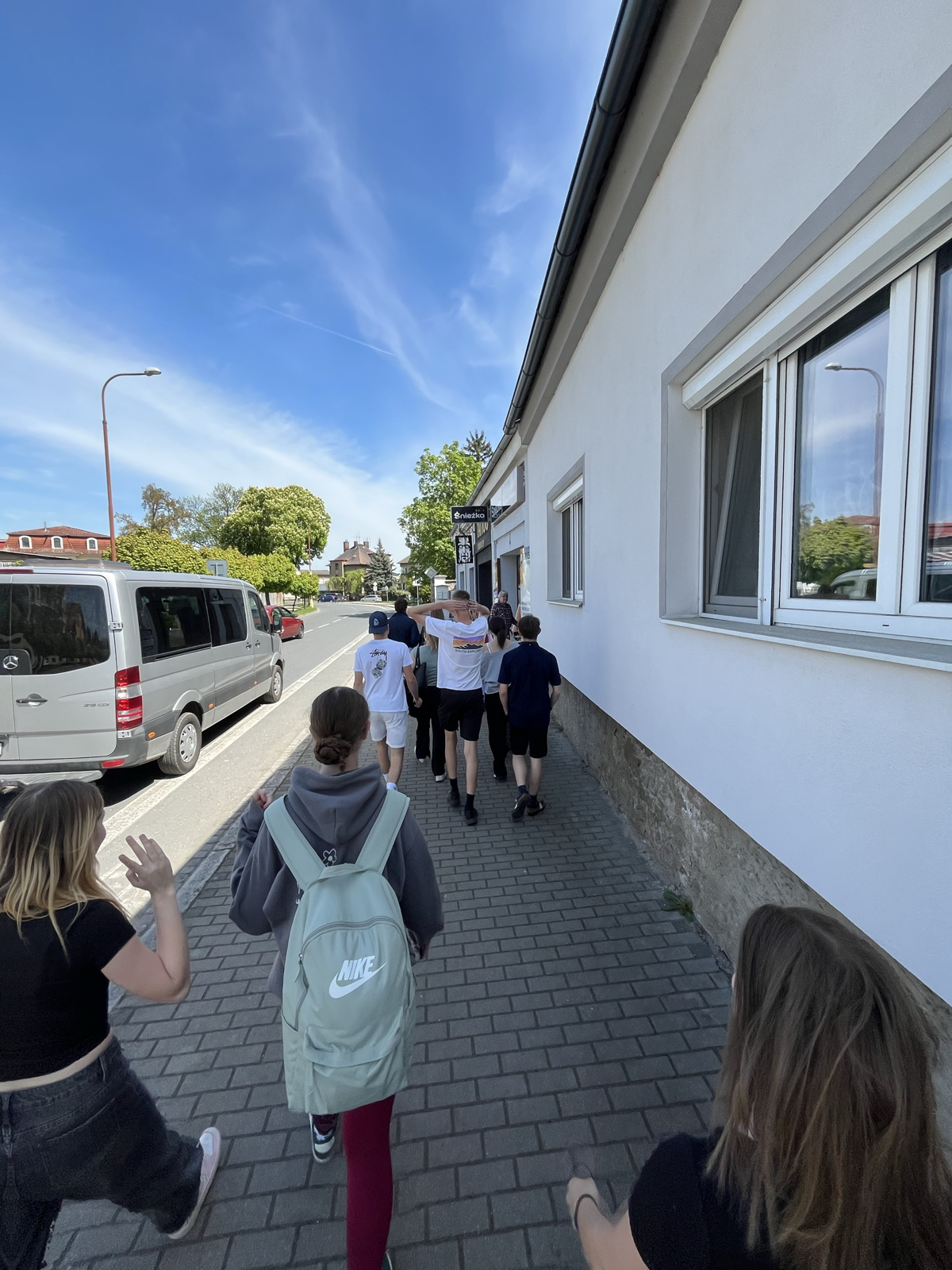 Učebnice jsme tentokrát vyměnili za lopaty a pustili se do práce. Každý z nás měl možnost přiložit ruku k dílu – od vykopání jámy, přes samotné zasazení stromu, až po přidání dřevěných tyčí, které nyní slouží jako opora. Překvapilo nás, jak fyzicky náročné sázení stromu může být, ale zvládli jsme to s chutí a úsměvem.