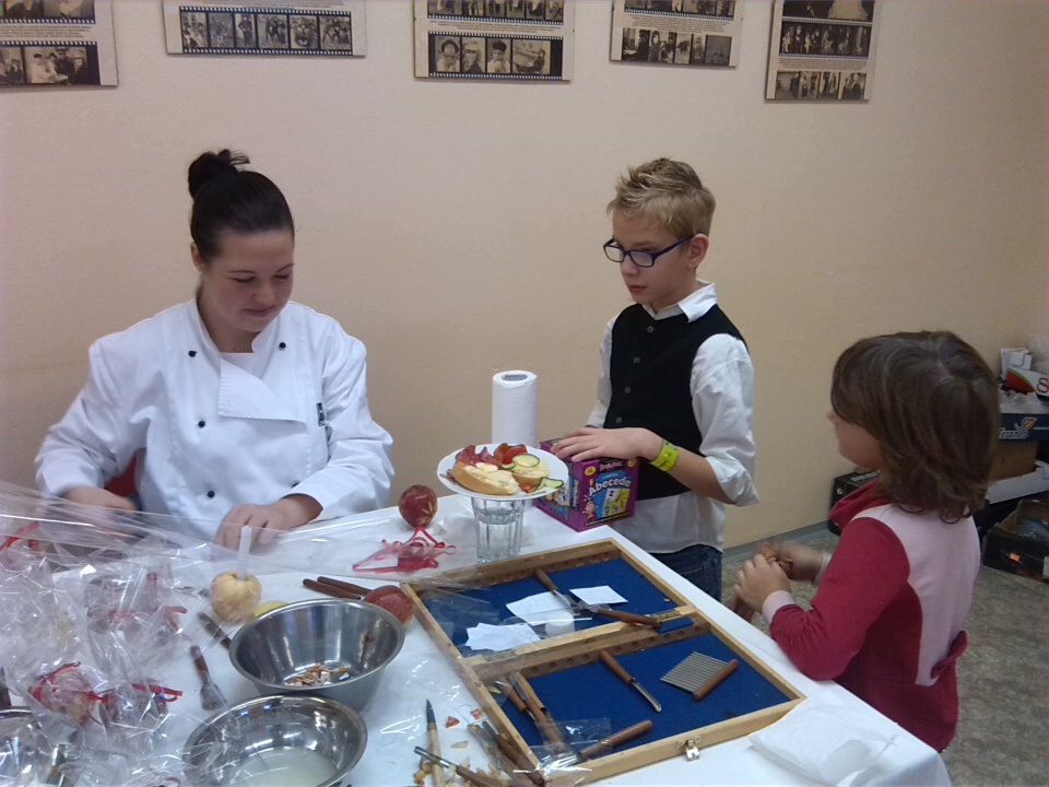 Dne 30.11 2014 jsme se zúčastnili dne otevřených dveří v Dětském domově v Nymburce, kde jsme v rámci spolupráce mezi naší školou a dětským domovem předvedli dětem ukázku vyřezávání ovoce. Děti si samy mohly vyřezat své jablíčko, do kterého nakonec umístily svíčku a vyrobily si tak krásný svícínek.