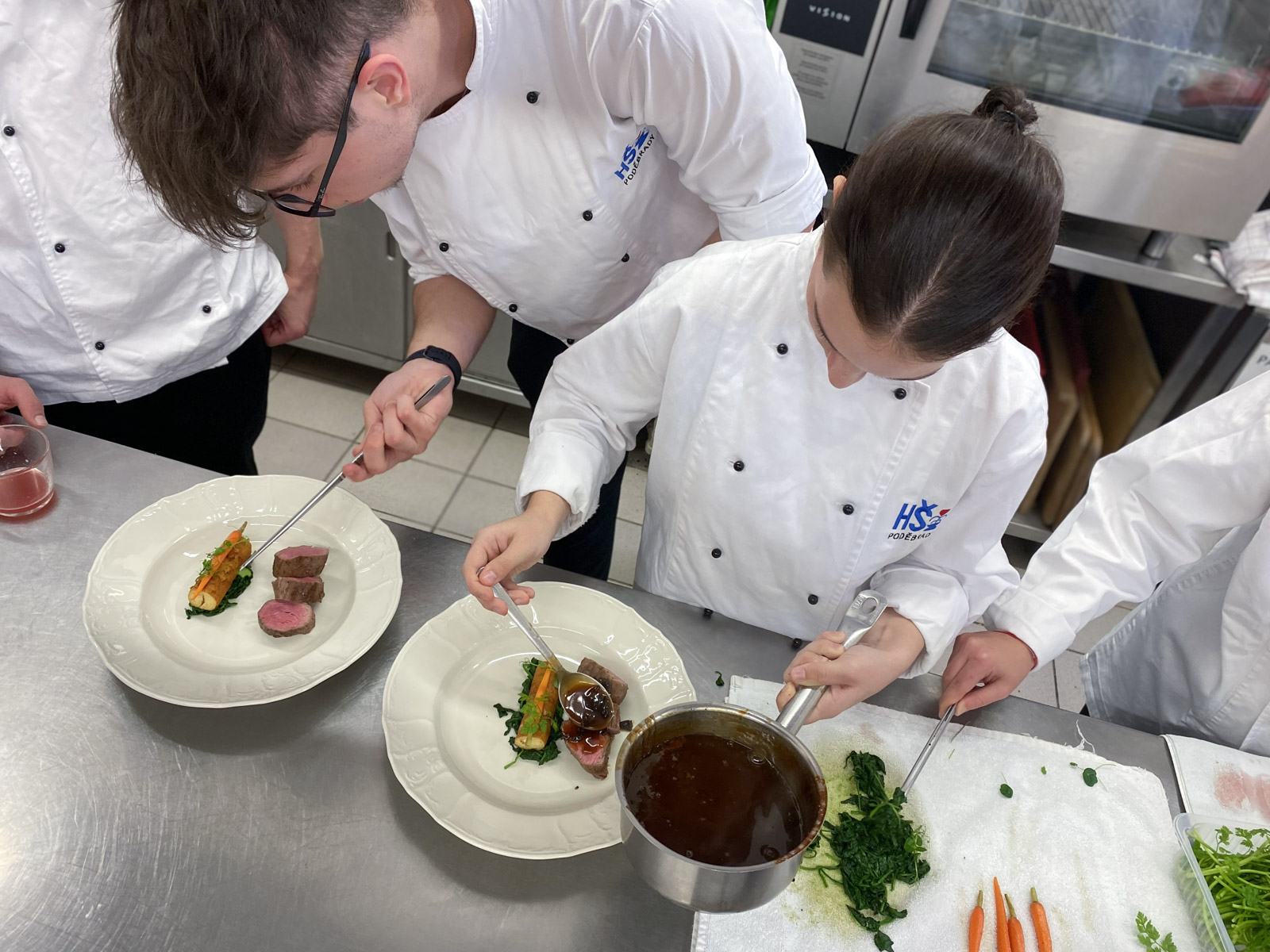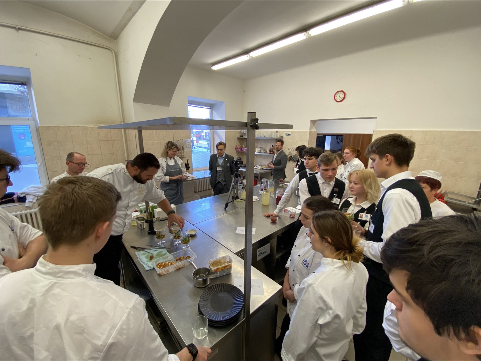 Ve středu 29. 11. 2023 se u nás ve škole uskutečnil workshop od hotelu Chateau Mcely. Žáci se mohli podívat na přípravu a servis tříchodového menu, ale také zkusit namíchat tři drinky z nealkoholického ginu, vodky a rumu. Celá akce přitom byla komentována šéfkuchařem Janem Štěrbou, sous chefem Jakubem Motákem a F&B managerem Michalem Hrčkulákem. Žáci se tedy při této příležitosti podívali pod čepec jedné z nejlepších restaurací v České republice.