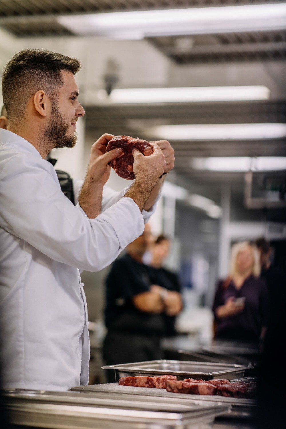 Navštívili jsme kuchyň, kde nám profesionální kuchaři ukázali, jak se naučit přípravu různých stupňů propečení steaků z hovězí svíčkové, a poté jsme je mohli ochutnat.