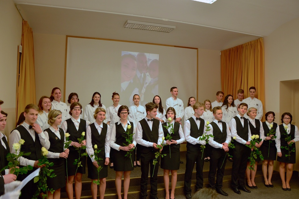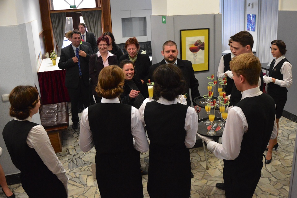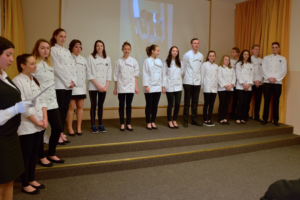 První den (v pátek) byli našimi hosty rodiče, třídní učitelka paní Ivana Širbičová a pan zástupce ředitelky Jan Kupr. Pozice vedoucí celého banketu se skvěle zhostila Dominika Šídová. V pátek skupinu obsluhujících vedl Jakub Litoš a přípravu slavnostního menu Jakub Vítek.