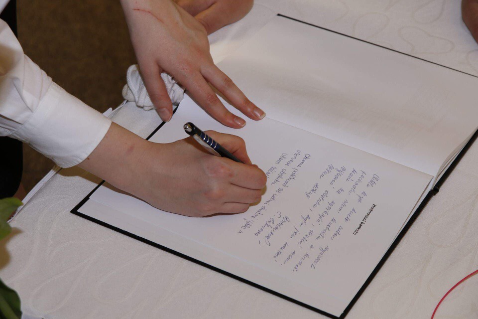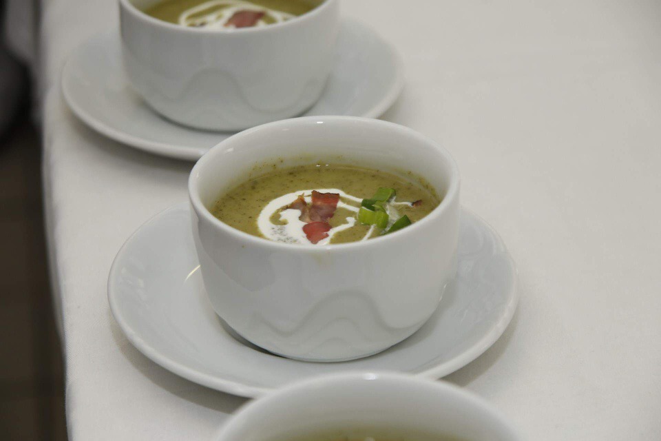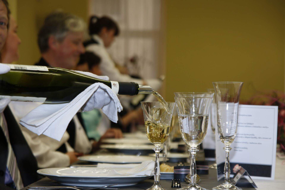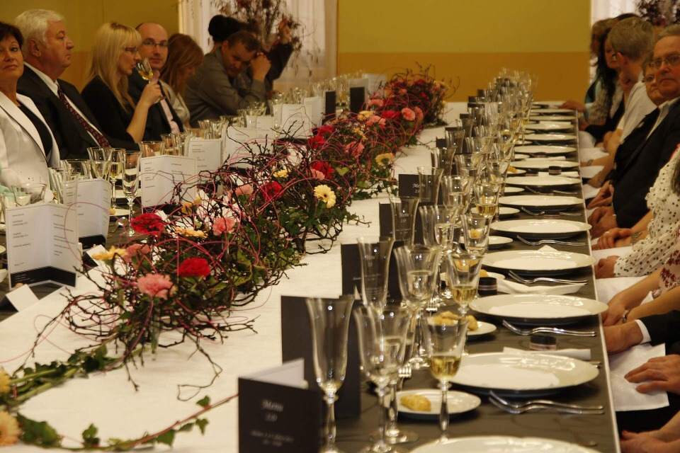 Pro první skupinu byl slavnostní banket zahájen v pátek 4. 4. 2014. Tato skupina obsluhovala své rodiče, zatímco druh připravovala pokrmy v kuchyni. V sobotu 5. 4. 2014 se role vyměnily. Banket začal ve 14 hodin slavnostním aperitivem, po kterém se rodiče přesunuli do posluchárny školy. Poté přišel na řadu brokolicový krém s banketním pečivem, pečený losos na bylinkách s grilovanou zeleninou a holandskou omáčkou, konfitované kachní prsíčko s karlovarskými a chlupatými knedlíky, červeným a bílím zelím, následovaly tvarohové dortíčky s malinovou slzou a káva s pralinkami. Všechny pokrmy byly doplněny vhodnými nápoji.