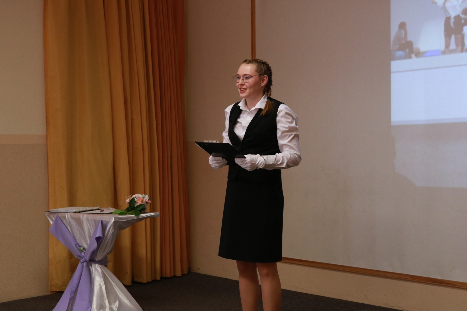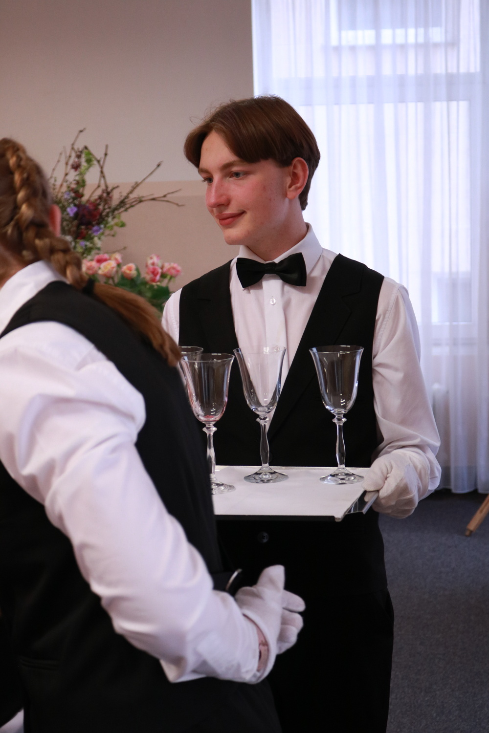 S přípravami jsme začali už v úterý ráno. Polovina třídy se věnovala dekorování tabule a druhá skupina začala s vařením na následující den. Ve středu zahájila banket obsluhující skupina pod vedením Veroniky Veselé. V kuchyni měl přípravu slavnostního menu pod dohledem Štěpán Kerhart. Druhý den se tyto skupiny vyměnily a vedoucí kuchyně Petr Sudík se svojí polovinou připravoval jednotlivé chody pro skupinu obsluhy pod vedením Kristýny Kotrčové. Vedoucí celého banketu byla Vendula Součková.