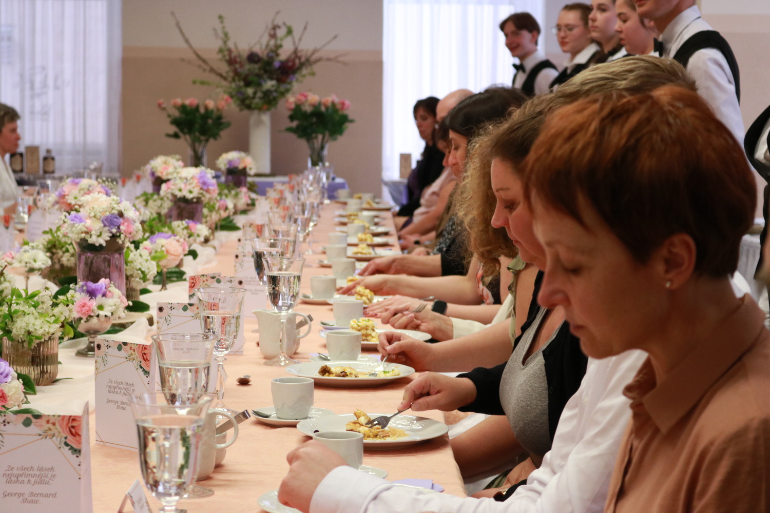 Během několika předešlých týdnů jsme sestavili menu a nachystali si dekorace, které z naší školní posluchárny vykouzlily slavnostní prostředí.