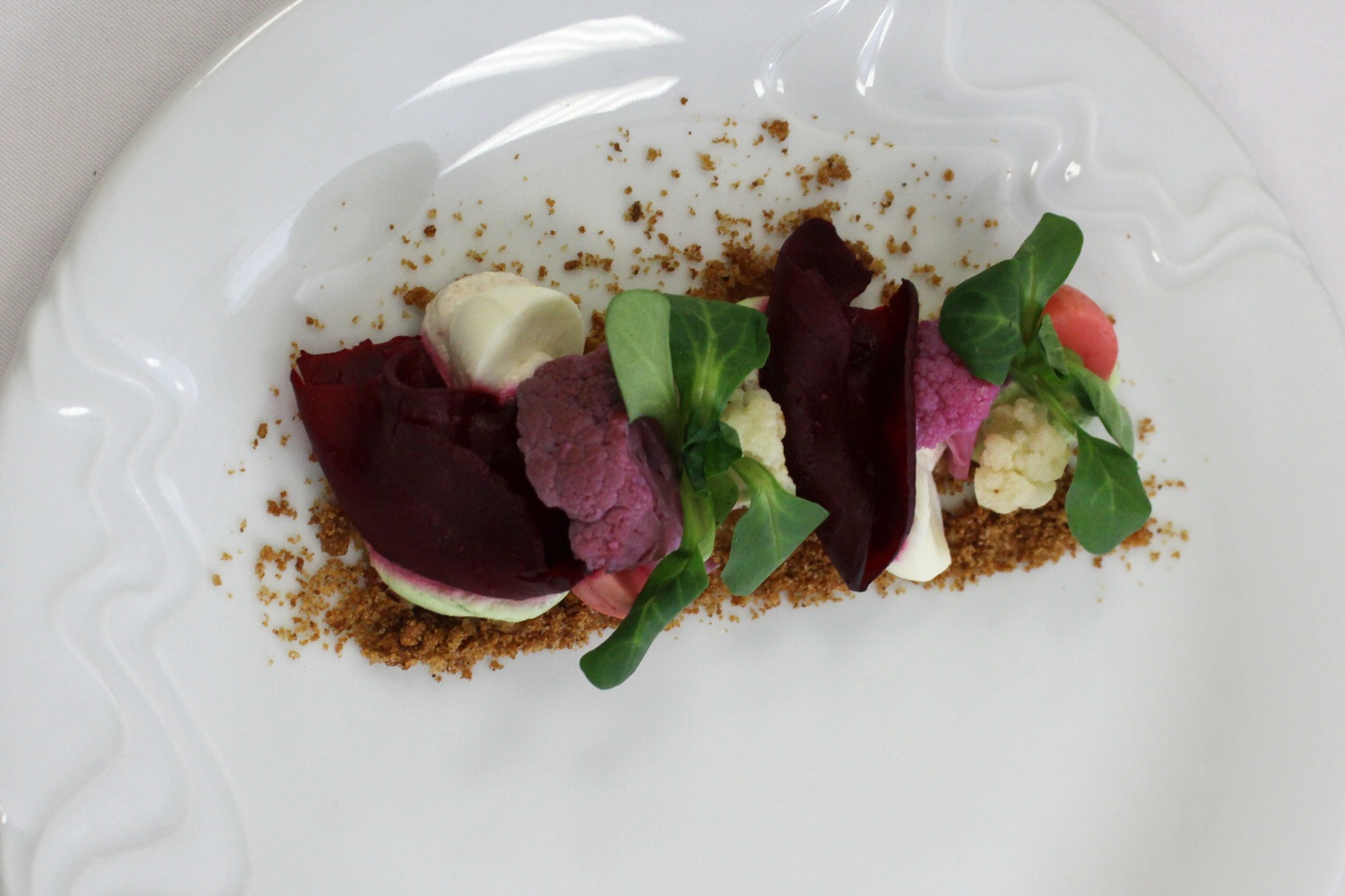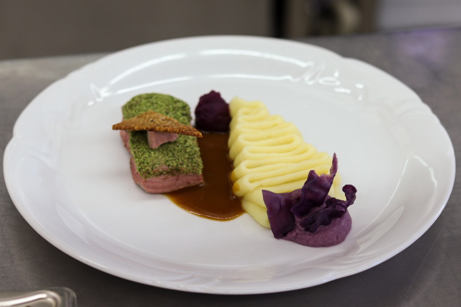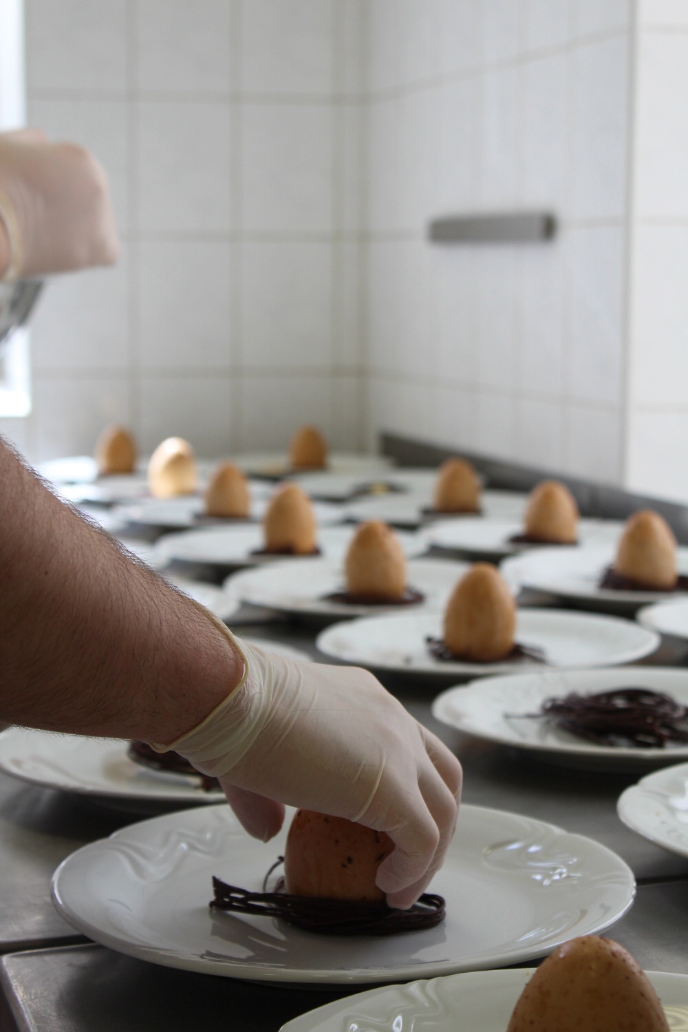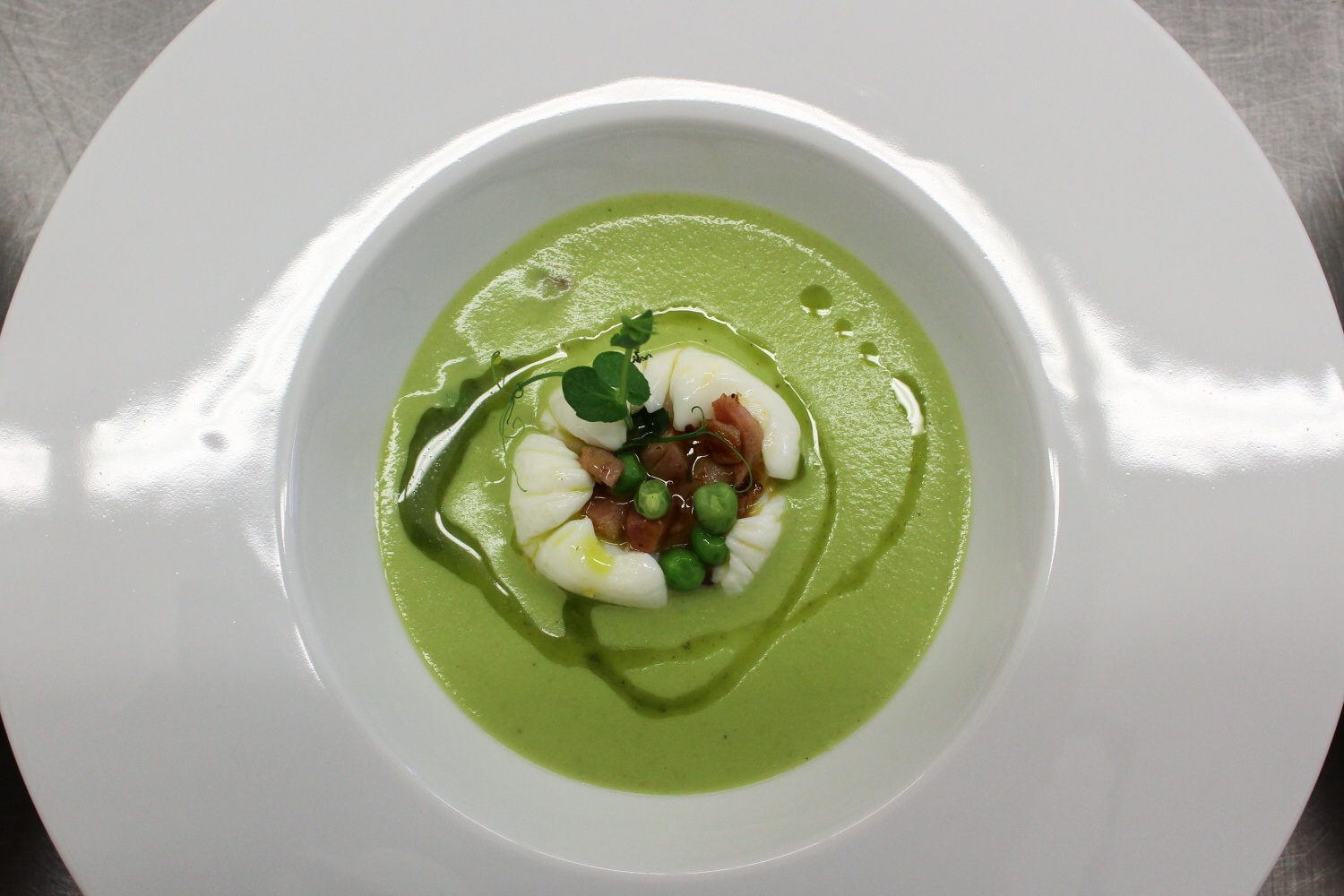Na začátku roku jsme se poměrně rychle shodli na jednotlivých pokrmech. Jako předkrm jsme vybrali: marinovaný květák, pečená řepa, wasabi, ořechy, mozzarella, banketní houska a bylinkový loupák. Polévka: hráškový krém, zastřené vejce, slanina, mátový olej. Hlavní chod: kachní prso, bramborové pyré, červené zelí, zázvor, šípkové demi glace. Dezert: kokosové vejce, mango, marakuja.