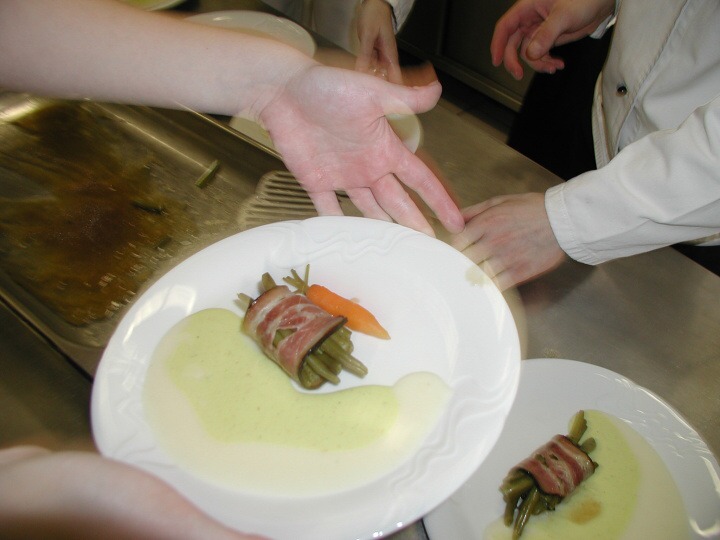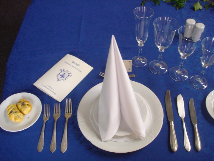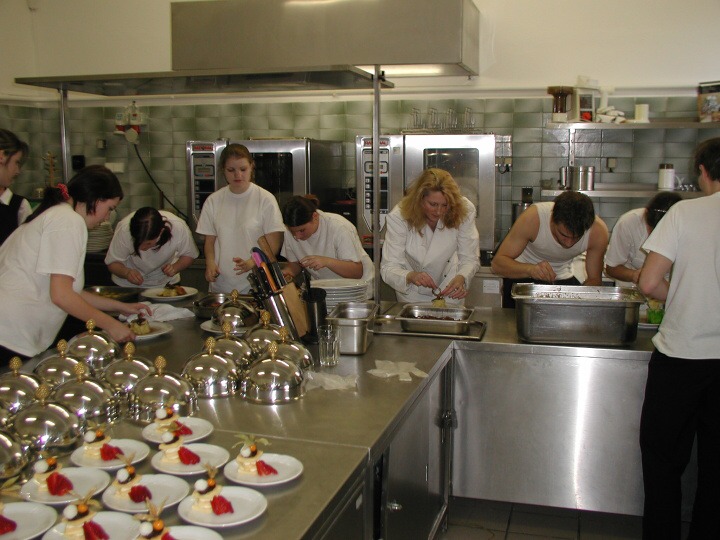 Na řadu přišla nejdůležitější věc – sestavení menu. Troufám si říct, že to byl nejtěžší úkol, který se neobešel bez mnoha hádek. I přes všechna úskalí jsme sestavili pravé zámecké menu, ve kterém nechyběl losos ani zvěřina. 9. a 10. duben se blížil a my jsme usilovně cvičili nástupy, zdokonalovali svoje kuchařské schopnosti, sestavovali libreto, sepisovali žádanky, zajišťovali výzdobu, nápoje a mnoho dalších důležitých věcí pro správný chod banketu.