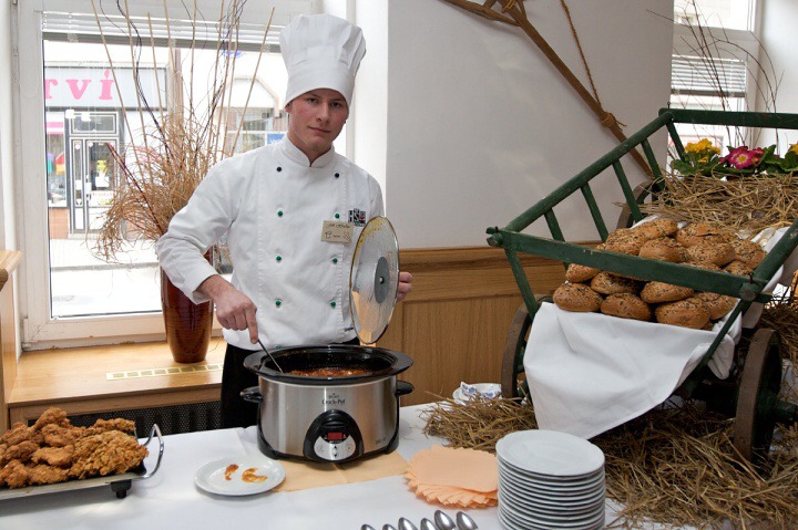Ve 14:00 hodin v přízemních prostorách hotelové školy se atmosféra dala krájet a napětí v každém z nás stoupalo do astronomických výšin. Kulturní program jsme zahájili divadelní scénkou, která se neobešla bez menšího zaškobrtnutí, ale i přesto měla veliký úspěch a všechny pobavila. O zakončení programu se postarali kuchaři svým tanečním vystoupením.