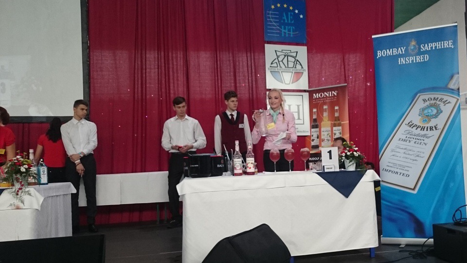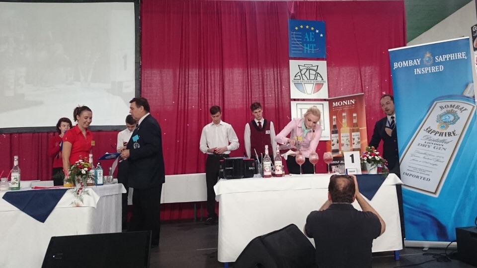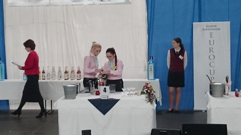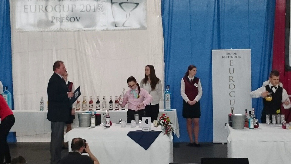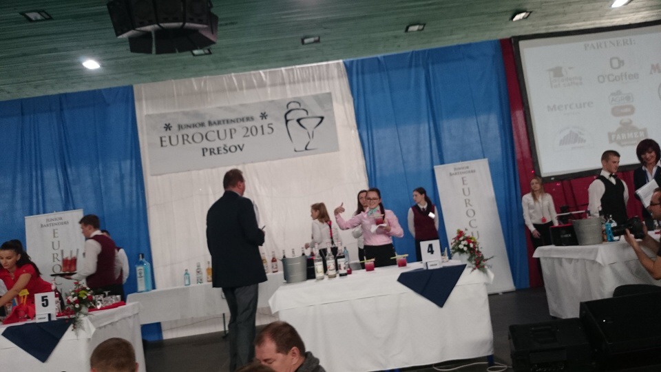 Ve dnech 11. – 13. listopadu nám Hotelová škola v Poděbradech umožnila zúčastnit se barmanské soutěže Eurocup 2015 ve slovenském městě Prešov. Reprezentovat naší školu jsme jely já Simona Žďárská a má spolužačka Kateřina Hejčlová ze čtvrtého ročníku. Příjemný a podporující dozor nám dělala paní učitelka Hummelová. O bezpečný doprovod se postaral pan učitel Skořepa, který nám taky „držel palce“ při soutěžení. V letošním roce bylo zadání sestavené na jednom alkoholickém nápoji, pro který byl hlavní složkou gin Bombay Sapphire. Druhý koktejl byl nealkoholický s použitím sponzorských sirupů od společnosti MONIN. Konkurence byla opravdu veliká, soutěžící se sjeli skoro ze všech evropských zemí. Měli jsme možnost porovnat své barmanské dovednosti a inspirovat se novými „trendy“ od našich zahraničních přátel a kolegů. Mezi těmito všemi družstvy se náš tým umístil v bronzovém pásmu. Součástí celé akce byly různé přednášky o alkoholu osobností ze Slovenské barmanské asociace, mezi kterými byl i Martin Hudák, barman z pátého nejlepšího baru světa za rok 2015 - AMERICAN BAR, Hotel Savoy Londýn.