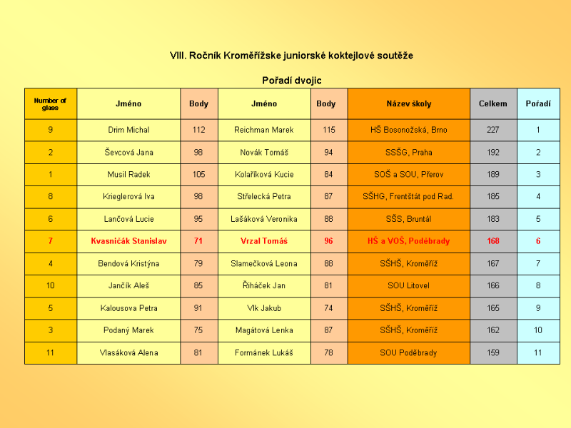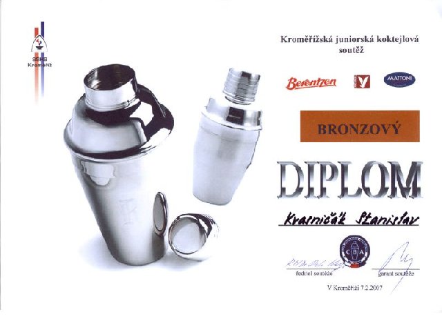 Studenti hotelové školy Stanislav Kvasničák a Tomáš Vrzal dne 7. 2. 2007 zúčastnili 8. ročníku Kroměřížské juniorské koktejlové soutěže.