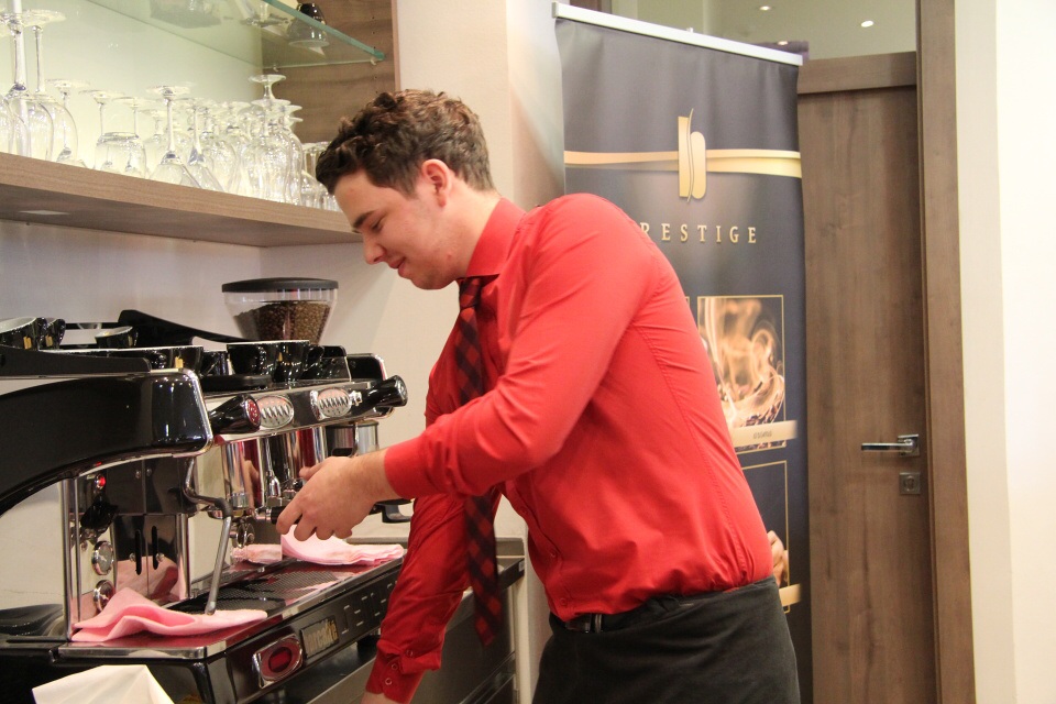 Náš jediný barista Petr Nožička, který soutěžil teprve podruhé, získal velmi pěkné páté místo a byl pochválen za nejlepší prezentaci a komunikaci s komisaři.