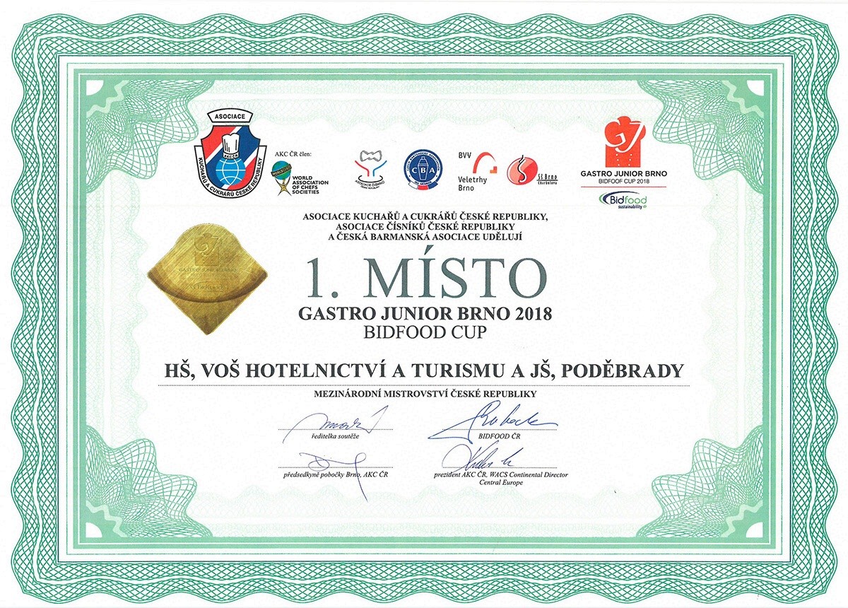 Ve dnech 18. až 21. ledna 2018 se v Brně konal gastronomický veletrh Bidfood Cup, mezinárodní mistrovství České republiky pro mladé odborníky v oblasti gastronomie, konaný v rámci mezinárodních veletrhů cestovního ruchu GO a Regiontour. Cílem této nejprestižnější soutěže mladých gastronomů je ověřit odbornou přípravu žáků a srovnat celkovou úroveň odborného vzdělávání v jednotlivých školách.