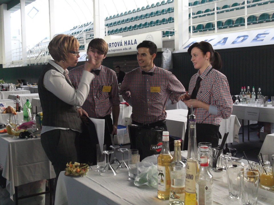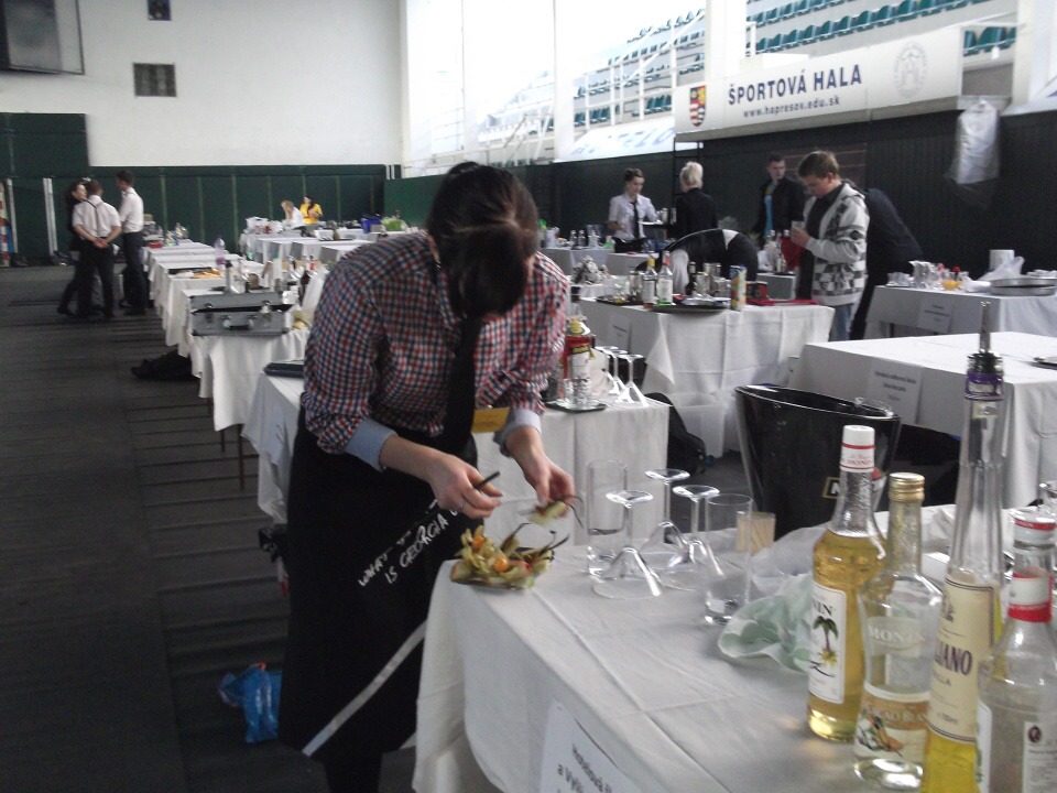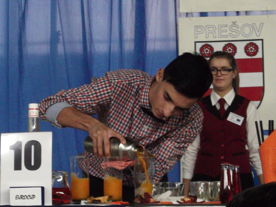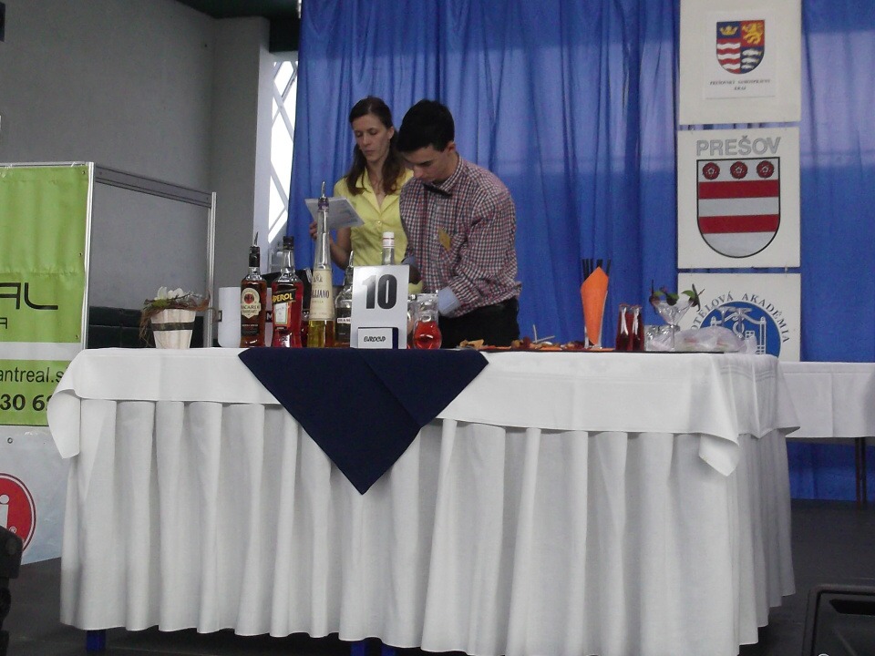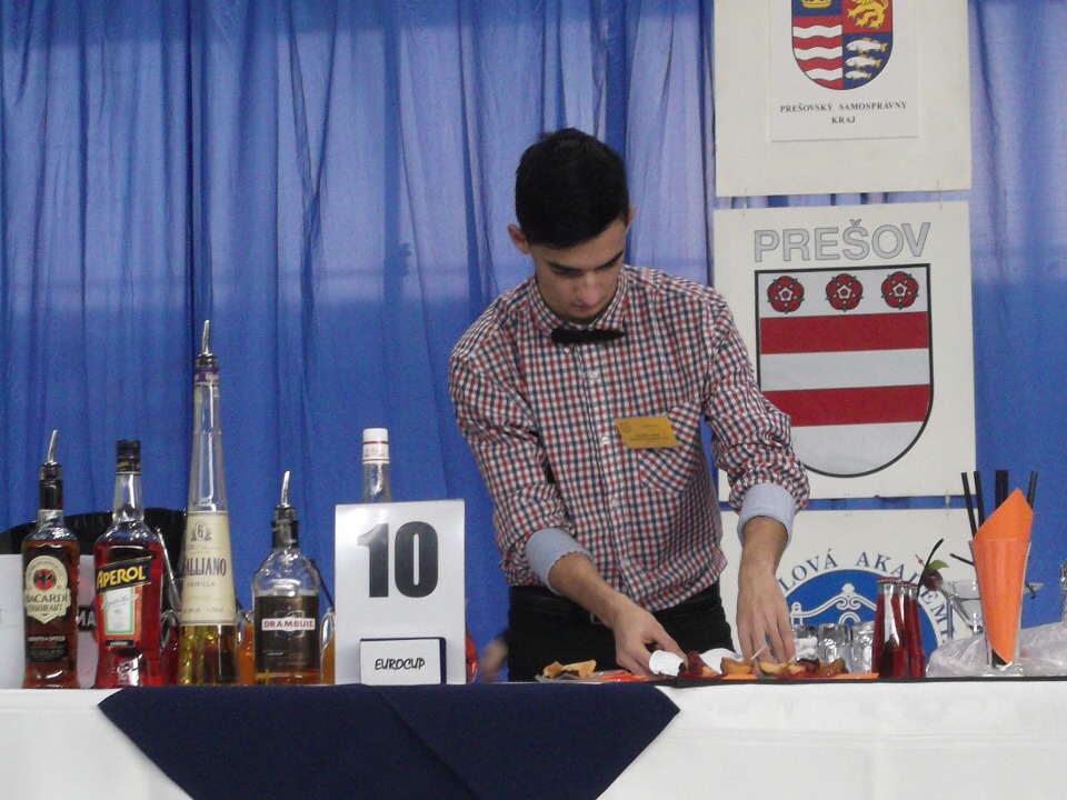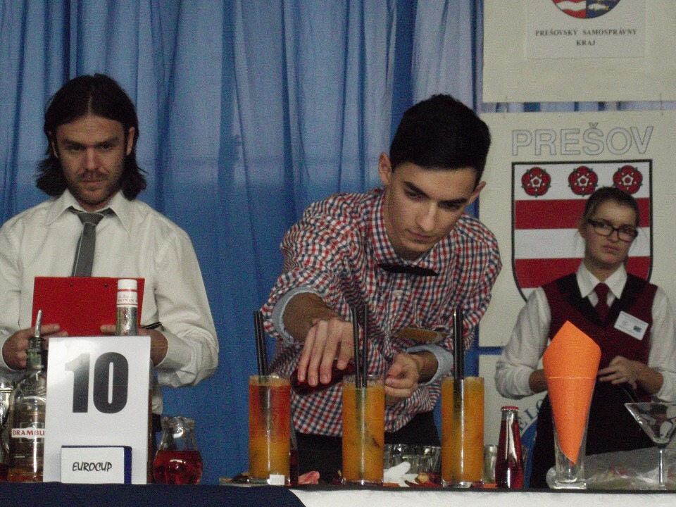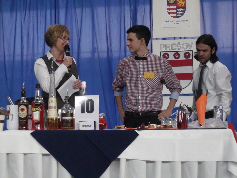 Ráno 13. listopadu jsme vyrazili na cestu. Po osmi hodinách jsme konečně dorazili na místo, kde nás čekala hned první překážka. Tou byl písemný test ze všeobecného přehledu a barmanství. Večerní slavnostní program pokračoval úžasným rautem. Vzhledem k 85. výročí založení Hotelové akademie Prešov a 20. výročí konání barmanské soutěže Eurocup se jednalo o neopakovatelný kulturní i gastronomický zážitek.