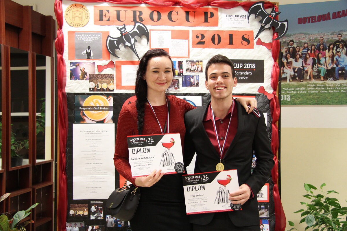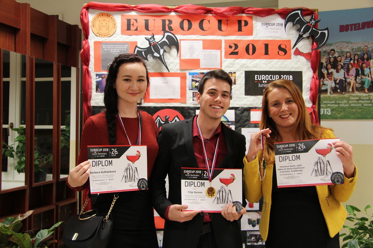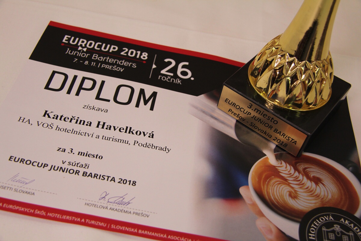 Ve dnech 7. a 8. 11. 2018 se v prostorách Hotelové akademie Prešov uskutečnil již 26. ročník mezinárodní barmanské soutěže Eurocup. Druhým rokem je součástí Eurocupu i baristická soutěž. Naši školu zde za baristiku reprezentovala Kateřina Havelková (3.C) a za barmanství Barbora Kulhánková a Filip Steiner (4.A). Na soutěž nás doprovodila paní učitelka Zuzana Hummelová, Marie Marešová a Eva Keclíková, kterým bychom tímto chtěli moc poděkovat za morální podporu, pevné nervy a intenzivní přípravu na soutěž.
