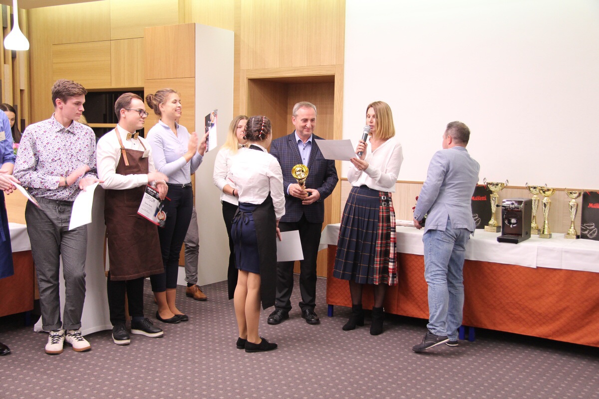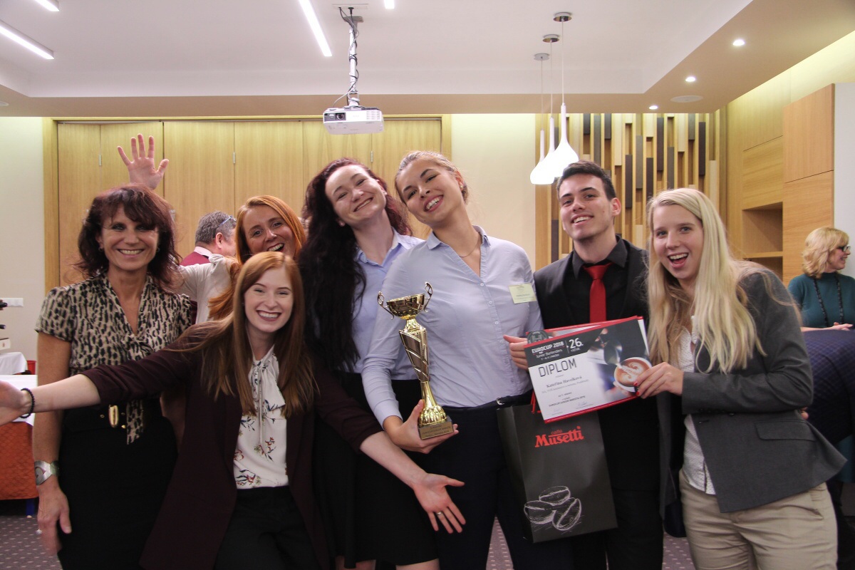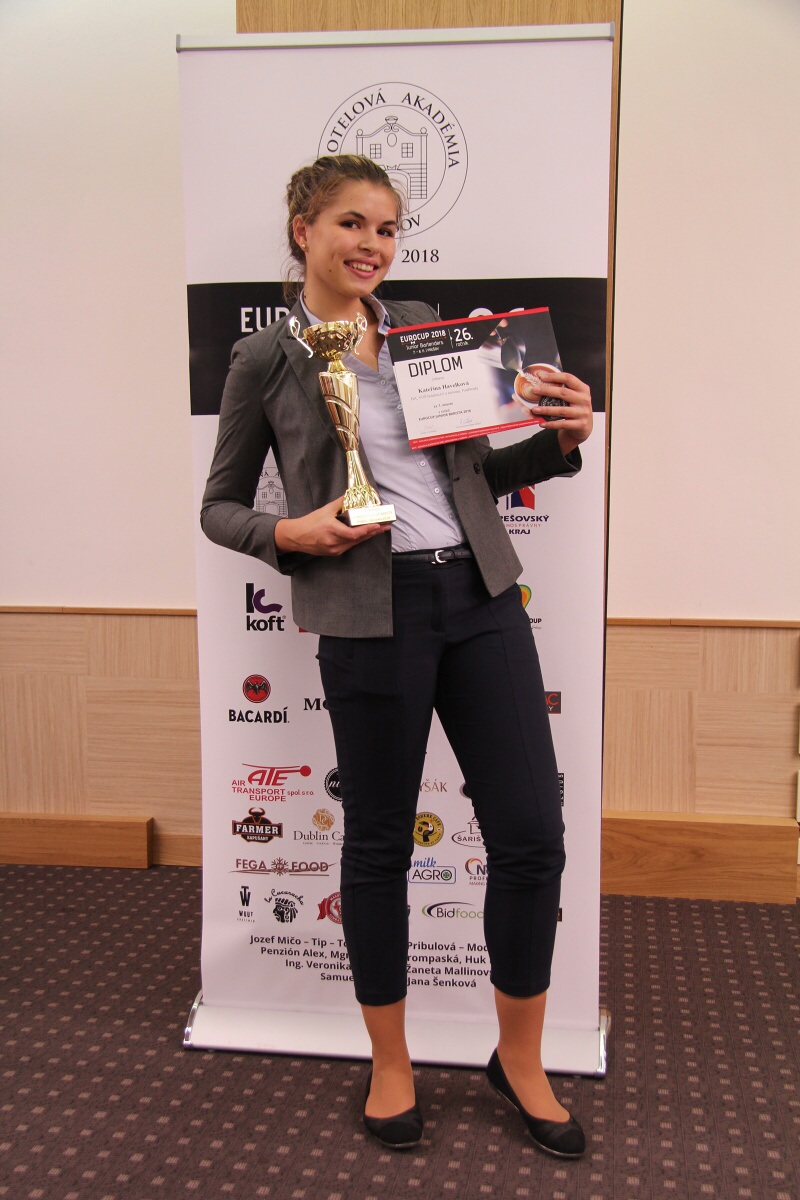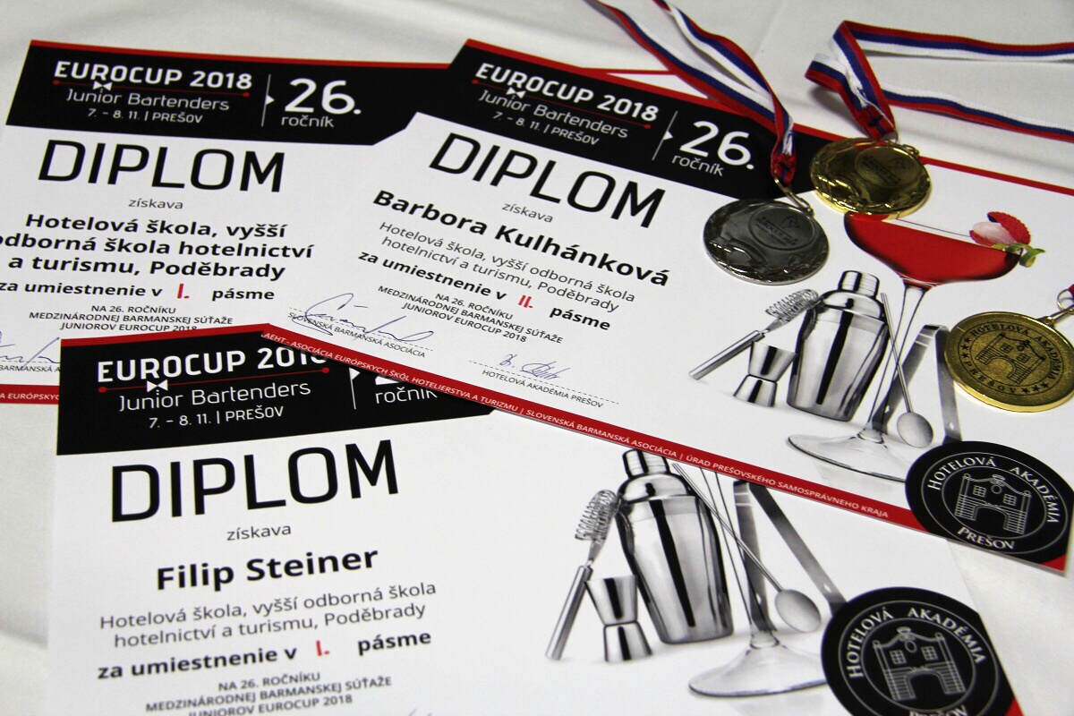 Ve dnech 7. a 8. 11. 2018 se v prostorách Hotelové akademie Prešov uskutečnil již 26. ročník mezinárodní barmanské soutěže Eurocup. Druhým rokem je součástí Eurocupu i baristická soutěž. Naši školu zde za baristiku reprezentovala Kateřina Havelková (3.C) a za barmanství Barbora Kulhánková a Filip Steiner (4.A). Na soutěž nás doprovodila paní učitelka Zuzana Hummelová, Marie Marešová a Eva Keclíková, kterým bychom tímto chtěli moc poděkovat za morální podporu, pevné nervy a intenzivní přípravu na soutěž.