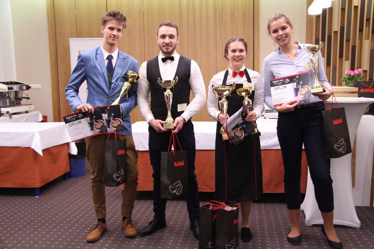I přes všechnu trému a stres jsme ze sebe vydali vše a velmi slušně jsme se umístili. Káťa si ze své první baristické soutěže přivezla pohár za třetí místo a Bára se umístila na prvním místě za nejlepší znalostní test. V celkovém pořadí z počtu 59 účastníků se Filip umístil na krásném 9. místě a Bára na 17. místě. Naše škola se z 29 škol umístila i letos ve zlatém pásmu, a to na čtvrtém místě. Všichni jsme velmi spokojeni a doufáme, že se naší škole bude dařit i v dalších soutěžích.