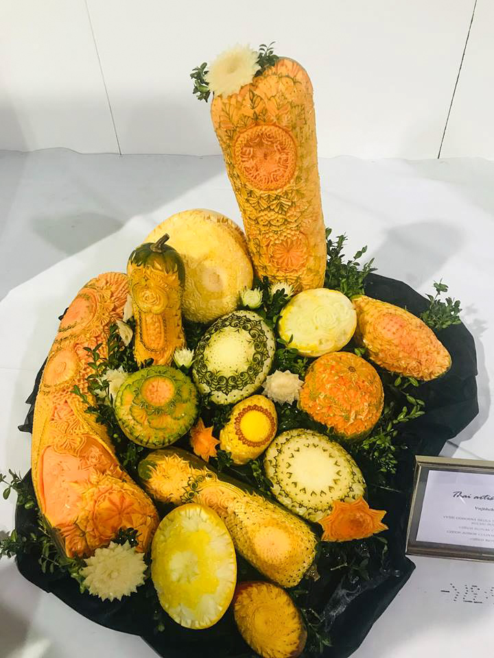 První den jsem vystavoval kompozici na volné téma, následně se konalo semifinále live carvingu, které trvalo 3 hodiny. Trochu nás zmátli pořadatelé novými propozicemi, ale jak se zjistilo po vyhlášení, na výsledek to nemělo žádný vliv. Po prvním dnu jsem držel v ruce 2 zlaté medaile.