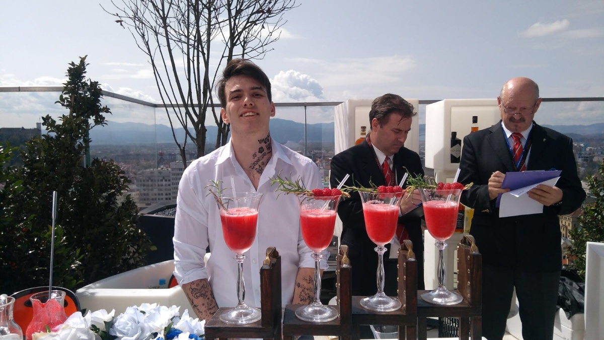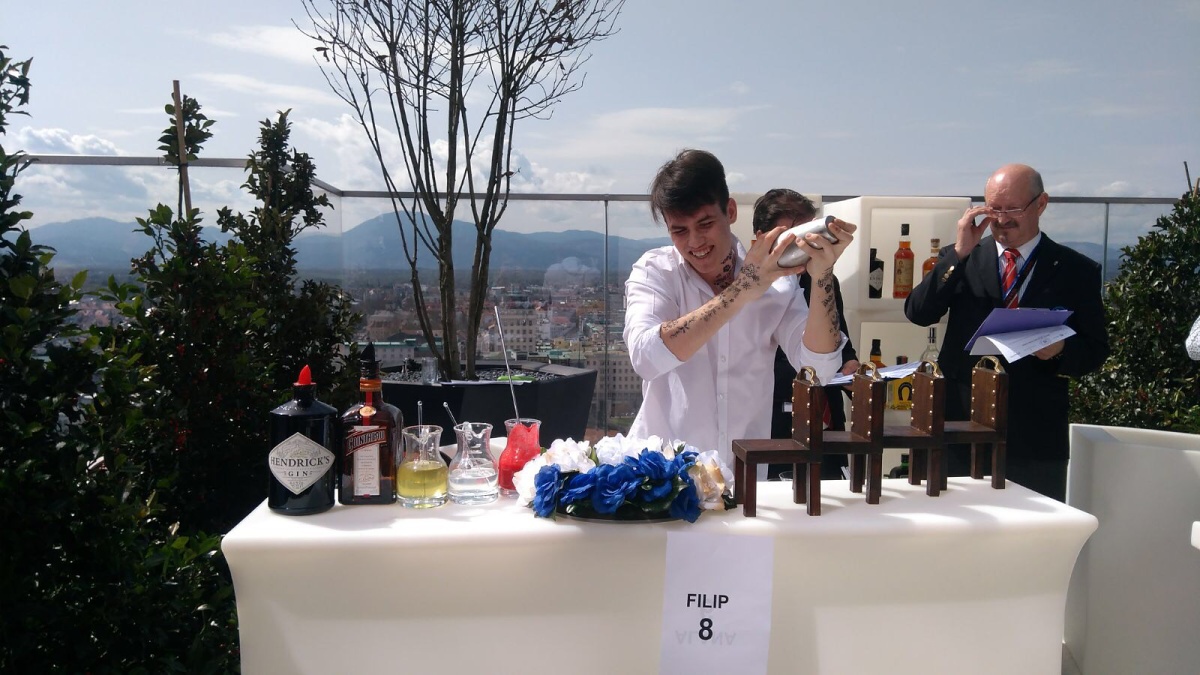 První den proběhl v Bledu test ze znalostí barmanství a druhý den samotná soutěž, která se konala v Ljubljani přímo na střeše hotelu Intercontinental. Soutěž nebyla ani pro jednoho z našich studentů jednoduchá, od špatné koordinace času pro nástup až po rozbité odměrky a rozsypané ozdoby. Ale proč brečet nad spadlým platem, když vše ve finále dopadlo dobře. Bára získala druhé místo za nejlepší techniku a Filip taktéž druhé místo za nejlepší chuť drinku. V celkovém bodovém ohodnocení se umístili na krásném devátém a třináctém místě. I přes veškeré komplikace a nátlak na psychiku si to oba velmi užili, vrátili se se spoustou vzpomínek a získali nové přátele.