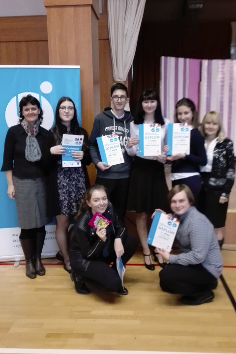 Šestičlenné družstvo studentů naší školy, které tvořili: Tereza Kredbová 2.C, Barbora Kulhánková 2.A, Josef Krejčí 2.A, Lucie Hudcová 3.B, Tereza Urbánková a Matěj Šrámek, oba 4.C, zvítězilo v 19. ročníku celostátní konverzační soutěže HŠ konané 23.3. - 24.3.2017 v Českém Těšíně. V silné konkurenci jedenácti škol studenti obsadili 1. místo v kategorii JF1, JF2, JN2 a JA2.