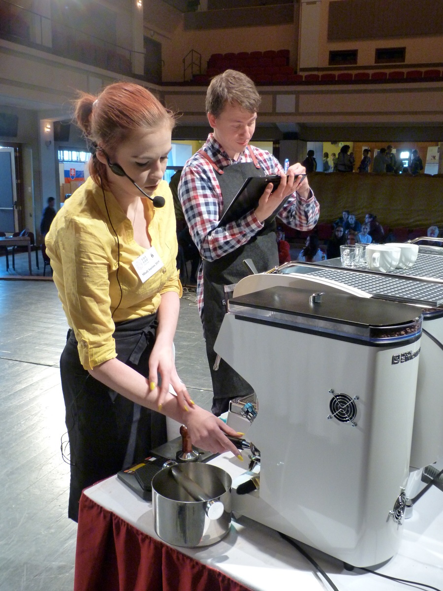 Do Poličky jsme přijely už o den dříve a večer prodiskutovaly naše volné drinky s kluky od Nordbeans. Ráno jsme byly na skvělé snídani v místním internátě a potom jsme se už vydaly vstříc novým zkušenostem a zážitkům. Soutěžní kávovary byly špičkové stroje z dílny Simonelli.