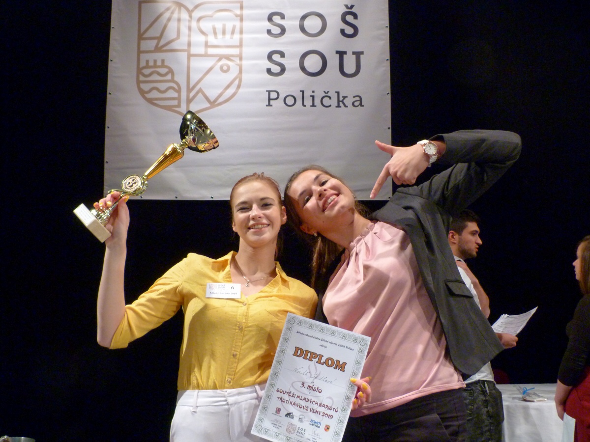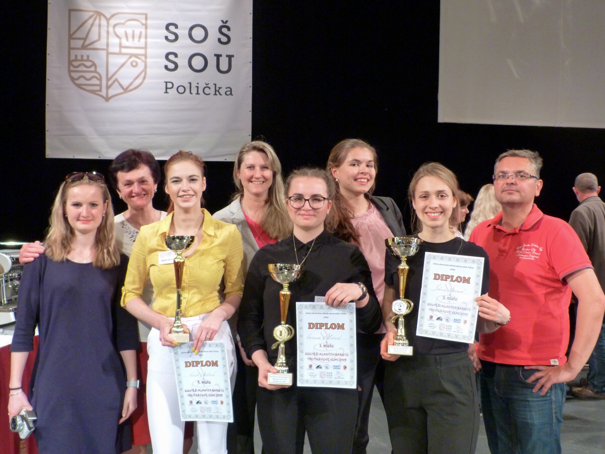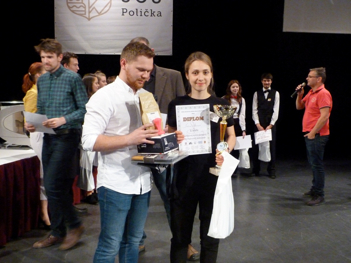 Tým baristů naší školy pod vedením paní učitelky Koštýřové a za doprovodu paní Roubíčkové se z baristické soutěže v Poličce vrátil opět se všemi třemi místy. Naši školu reprezentovaly Šárka Křenová, Vanessa Holánová a Naďa Seidlová. Jako psychická podpora a pomoc jely juniorky Kačka Havelková a Kristýna Krejčová.