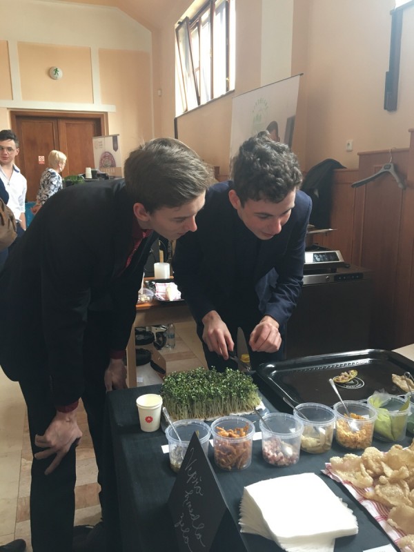 Jako diváci jsme měli možnost nejen sledovat a podporovat baristy juniory, ale mohli jsme ochutnávat bohatou baristickou a gastronomickou nabídku firem Nordbeans a Ambiente nebo vyzkoušet nápojovou, cukrářskou a carvingovou nabídku SOŠ a SOU Polička. Zde ve stáncích, v postranních částech sálu, jsme si mohli vyrobit chlebíček s řepou nebo mini zákusek ve stylu vepřo knedlo zelo. Vyzkoušeli jsme si také jak udělat latté art a mnohým z nás se i zadařilo.