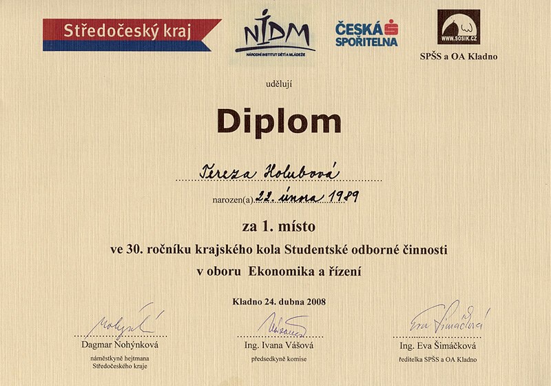 I v letošním roce se naše škola účastnila krajského kola Středoškolské odborné činnosti, která se letos konala 24. dubna v Kladně. Naši školu reprezentovaly dvě práce v oboru číslo 13 – Ekonomika a řízení: Společenská funkce a využití odbytových středisek hotelu od Terezy Holubové a Podnikatelský záměr od Milana Chalupníčka. Po menších peripetiích soutěžící dorazili na Střední průmyslovou školu stavební a Obchodní akademii v Kladně a úspěšně obhájili své práce.