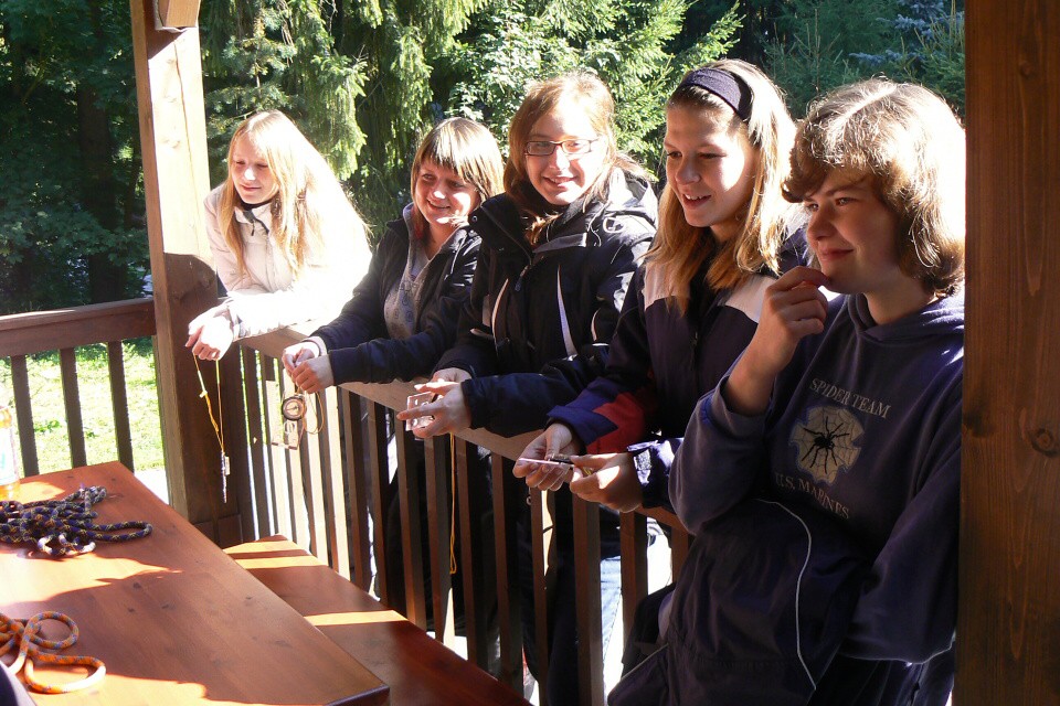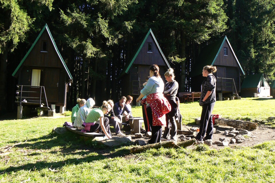 Odpoledne jsme byli po skupinkách vysláni do terénu, abychom si vyzkoušeli všechny získané informace v praxi. V den první jsme dostali mapu, buzolu seznam otázek a úkolů typu – „spoj do Jindřichova Hradce v nejbližší hodinu na nádraží, nejbližší penzion v Blatech, otevírací doba tamního kempu“ a tak jsme se poznali okolí a zdokonalili si své orientační dovednosti.