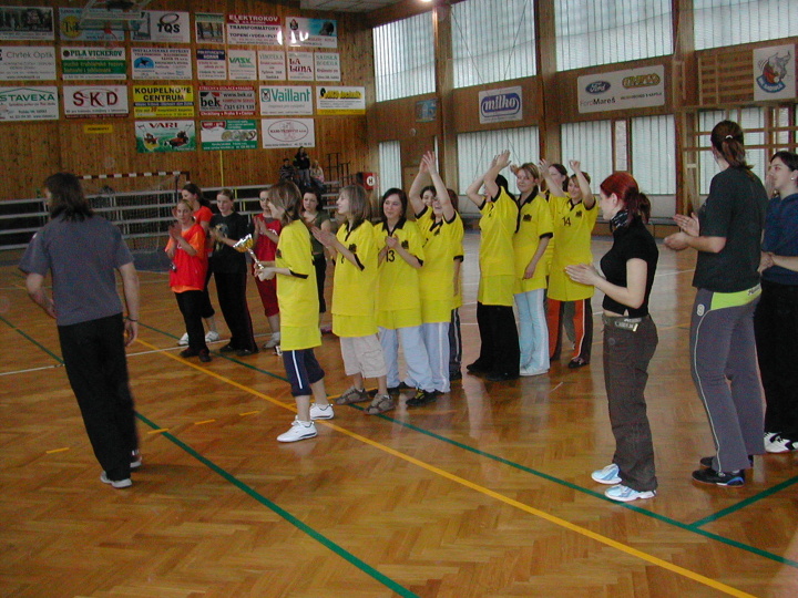 Složení našeho týmu: M. Machotová, P. Brtáňová, P. Seifertová, brankář – S. Hrstková, J. Šostková, H. Kasalická, K. Viková, M. Konířová, I. Kavánová
