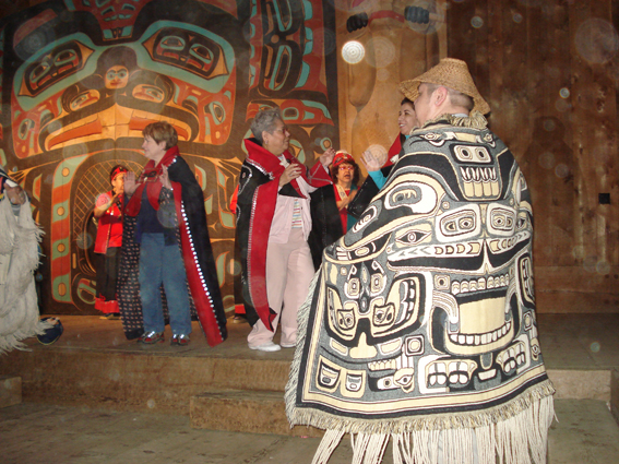 Zastavujeme v Creek Street u řezbáře Normana Jacksona. Je ve svém obchůdku a dopižlává masku. Nevypadá to, že by měl naspěch, povídá si s kamarádem a aby zaměstnal ruce, tu a tam něco ukrojí. Christa zapřádá hovor a já se začínám vyptávat. Poznal, že jsem učitelka, prý jsou hrozně zvědavé. Ale nakonec odloží masku a rozvíjí svou teorii o pokračování lidového umění v abstrakci. Dokonce si ho smím vyfotit. Nejraději bych ale jeho svatební foto, co visí na zdi. Je tam on, Tlingit, v černé hedvábné košili, se svou japonskou ženou, ona je pochopitelně v kimonu. Zajímavé propojení kultur…