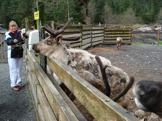 V jednu přiváží Ron hladovou Christu. Nedává mi šanci na poobědovou chrupku, skočíme do jejího auta a jedeme cca 8 mil od Ketchikanu do Togass National Forest k jezeru Ward a do hor. Okolí jezera je velice vlhké, samé mechy, všude skunk cabbage, atraktivní, ale smrdutá žlutá rostlina, první jarní potrava pro zvěř. A kapradiny. Ochutnáváme cosi jako petržel. Nadává nám veverka i nádherně modrá sojka. Míjíme bobří hráz, bobry jsme neviděly, ale čerstvé stopy po jejich nedávné práci ano. Chápu, co znamená, překousnout břízu vejpůl.