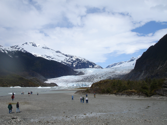Ráno už v půl deváté stojíme před Alaska State Museum. Muzeum je malé, ale milé, fotit se může dokonce i s bleskem, tak pořizuji snímky eskymáckých panenek Zajímavě kontrastují klasické masky s novodobými. Nově se dozvídám o původu aljašské vlajky, kterou navrhl třináctiletý Benny Benson, Jeho návrh byl vybrán a schválen v parlamentu v roce 1927 (60 let po vzniku americké vlajky) v dětském konkurzu na úřední vlajku Aljašky. Nové jsou i informace o bojích za 2. světové války mezi Američany a Japonci. V půl jedné jedeme k ledovci. V jezírku pod ledovcem plují kusy tisíciletého ledu, cestou k vodopádu obřích rozměrů si jeden kousek fotím. Je naprosto čirý jako nedokonalejší sklo. Bohužel v ruce mi rychle taje. Místní děti se koupou v mělkých ledovcových jezírcích, a užívají si pláží s pískem jak mouka…