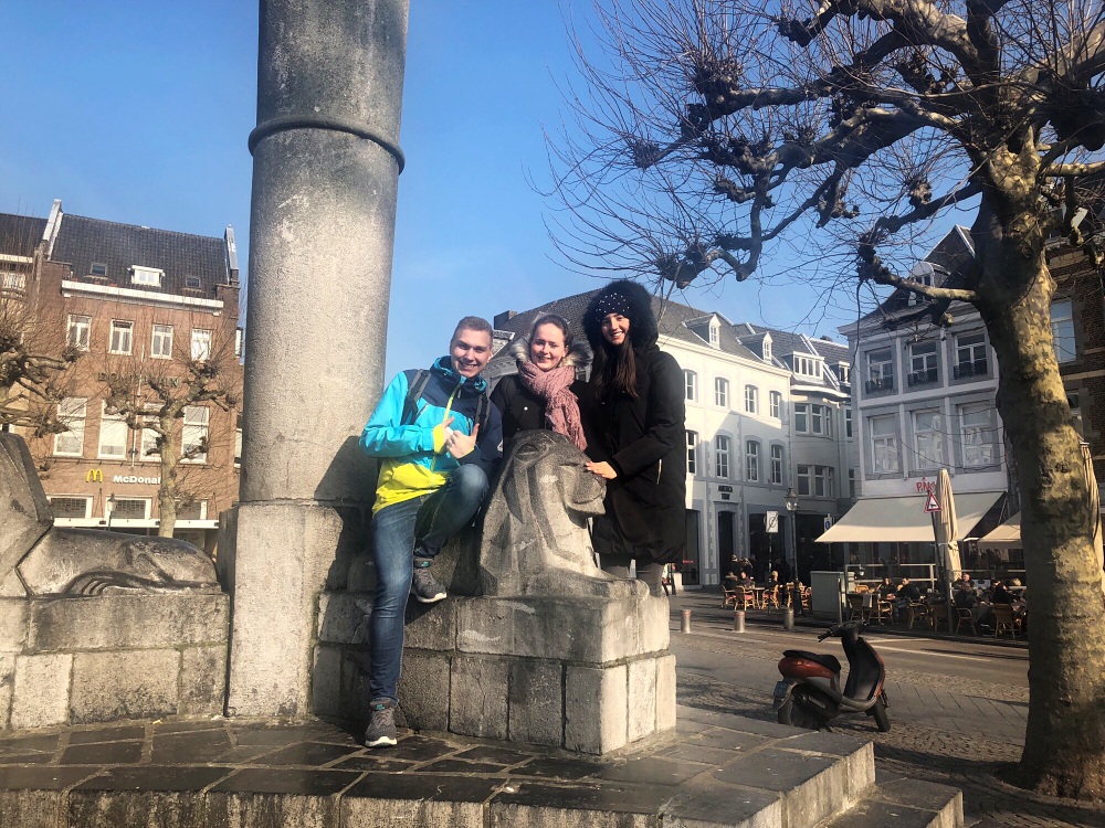 První neděli našeho pobytu jsme měli všichni volno, tak jsme vyrazili na výlet. Do nizozemského Maastrichtu je to z Cách autobusem pouhých 27 km. Místo, kde se dá přejít řeka Meuse, i tak se dá vyložit jméno města. Už Římané zde postavili první most, ale dnešní Maastricht se pyšní kamenným mostem Sint Servaasbrug z konce 13. století. Takže dnes je nejstarším mostem v Nizozemsku. Jeho sedm kamenných oblouků znamená pro Maastricht asi tolik, co Karlův most pro Prahu. Evropská unie právě zde podepsala 7. února 1993 smlouvu o evropské integraci a spolupráci členských zemí. A v tomto koutu Evropy se spolupracuje přímo vzorově. Je zřejmé, že Maastricht je oblíbeným výletním místem nejen Němců, ale i Belgičanů (taky to sem mají co by kamenem dohodil) a Čechů.