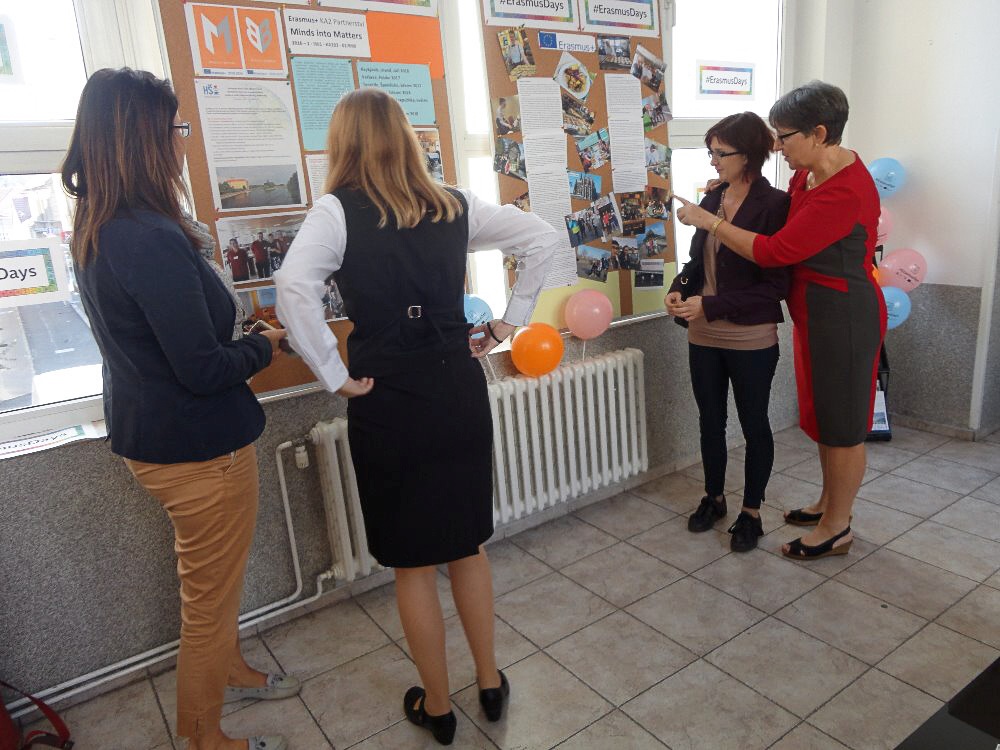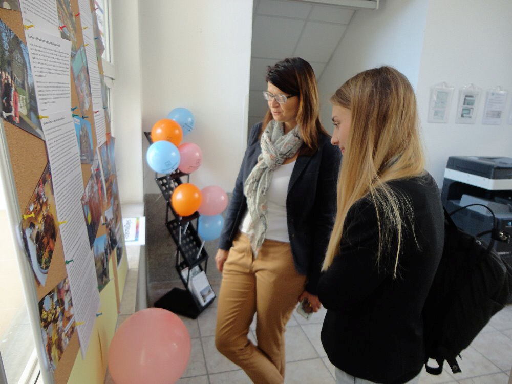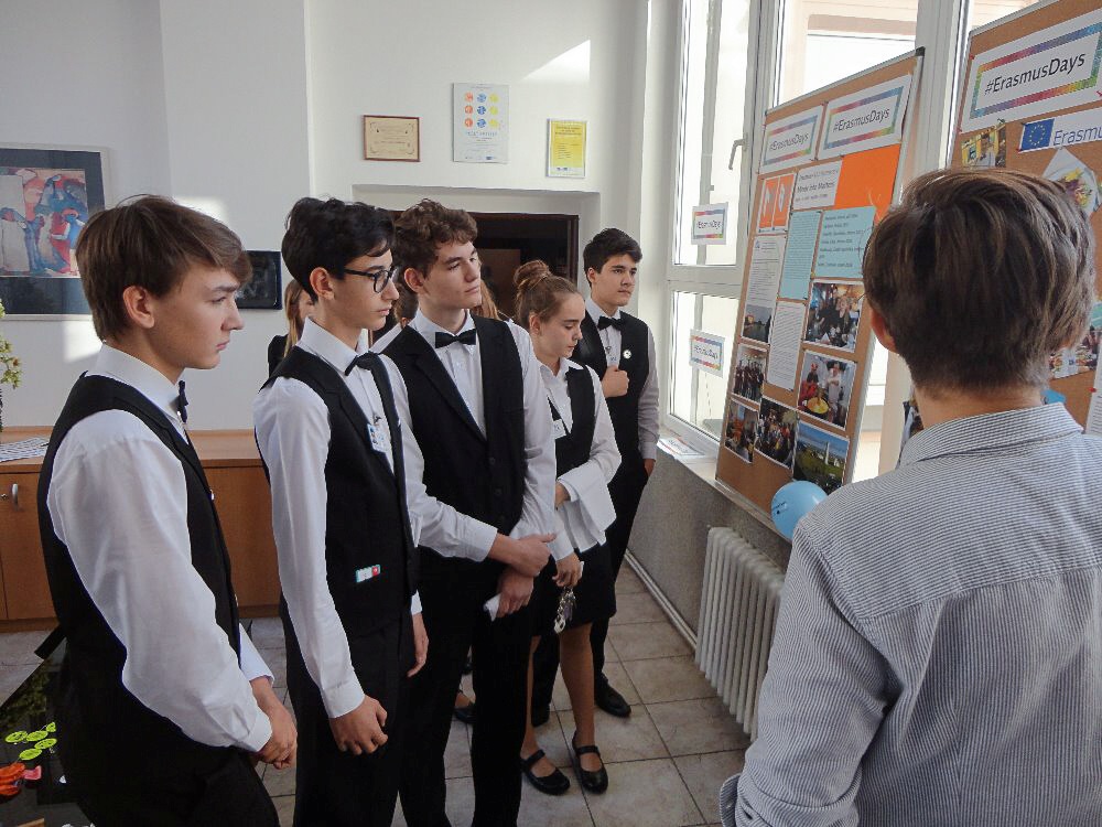 V prostorách školy byla po celý den ke zhlédnutí výstava fotografií zachycující průběh a zážitky z projektů Erasmus+ jichž se žáci a učitelé školy zúčastnili. O velké přestávce se pak účastníci projektů Erasmus+ podělili o své zážitky.