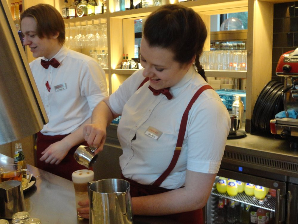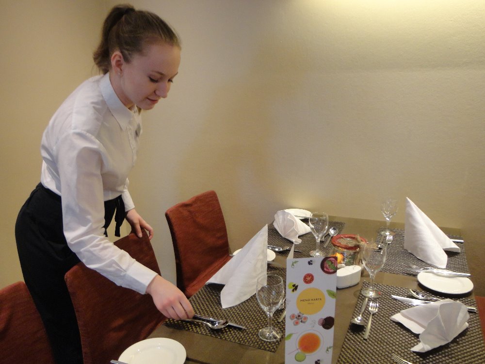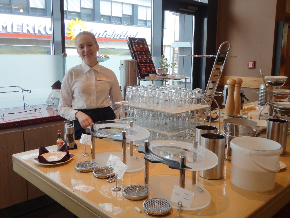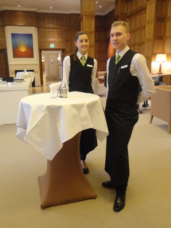 Marek a Dorka pracují v hotelu Quellenhof, což je luxusní hotel poskytující lázeňské služby. Pracují na snídaních, podle potřeby na večeřích nebo banketech. Bílá košile, kravata a švédská zástěra jsou pro tuto práci nutností. Stejně je na tom i Anička v místním Novotelu. Míša pracuje nejblíž a do italského řetězce Vapiano to zvládne za pár minut pěšky. Vapiano je i tady v Cáchách typicky italskou restaurací, rušnou v kteroukoliv denní dobu. Voní tady bazalka a česnek, protože pokrmy se připravují přímo před zákazníkem u kuchařského pultu a každý si může říci, které ingredience si přeje na pizzu, gnocchi nebo do rizota. Naopak nejdále to má do práce Simona, do svého hotelu Hampton musí dojíždět autobusem. Ale ať už pracujeme kdekoliv, práci zvládáme s přehledem a posíláme pozdrav všem učitelům z naší poděbradské školy, kteří nás na stáž dobře připravili.