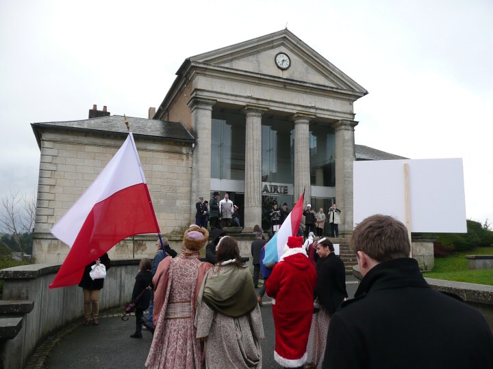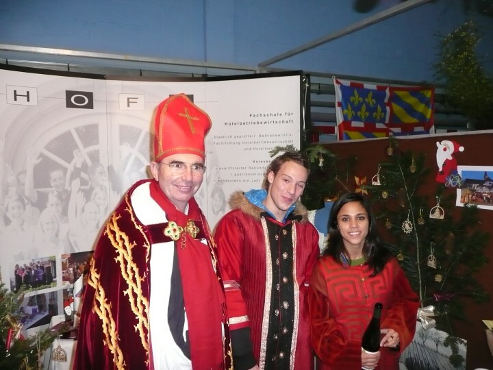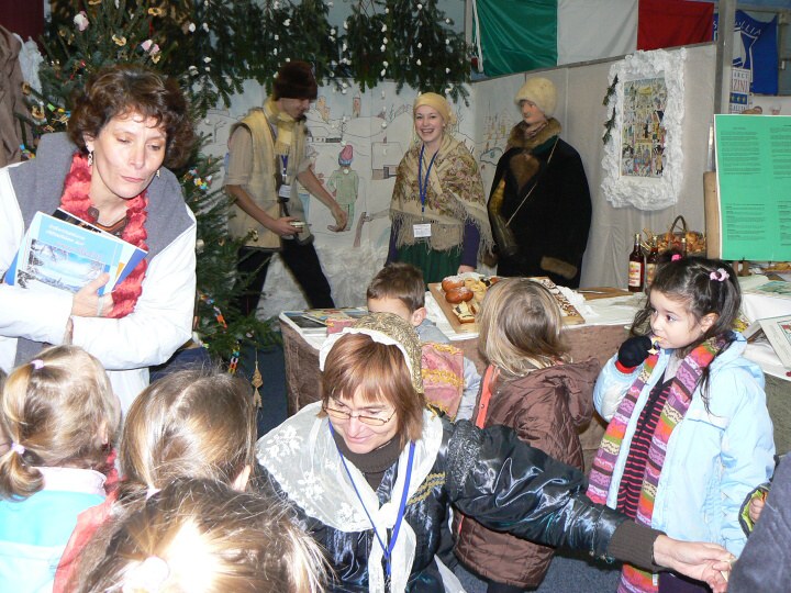 V sobotu jsme vstali před osmou hodinou a sešli se na snídani. Poté jsme se s chutí pustili do přípravy výstavního stánku. Polepili jsme stěny, oblékli sochu ponocného, ozdobili vánoční stromeček a na výstavní stůl jsme vyskládali cukroví, knížky s vánoční tématikou od Josefa Lady, prospekty naší školy a k ochutnání trochu medoviny. V poledne jsme už měli stánek připravený my i ostatní. Po obědě jsme hrdě vztyčili vlajku České republiky a s celou výpravou vyrazili do průvodu. V krojích a kostýmech jsme došli k radnici, kde se oficiálně zahájily letošní Evropské Vánoce. Odpoledne již byla výstava otevřena pro veřejnost, proto jsme se vrátili zpět do haly. Zde jsme nabízeli cukroví, představovali Josefa Ladu a reprezentovali české vánoce.