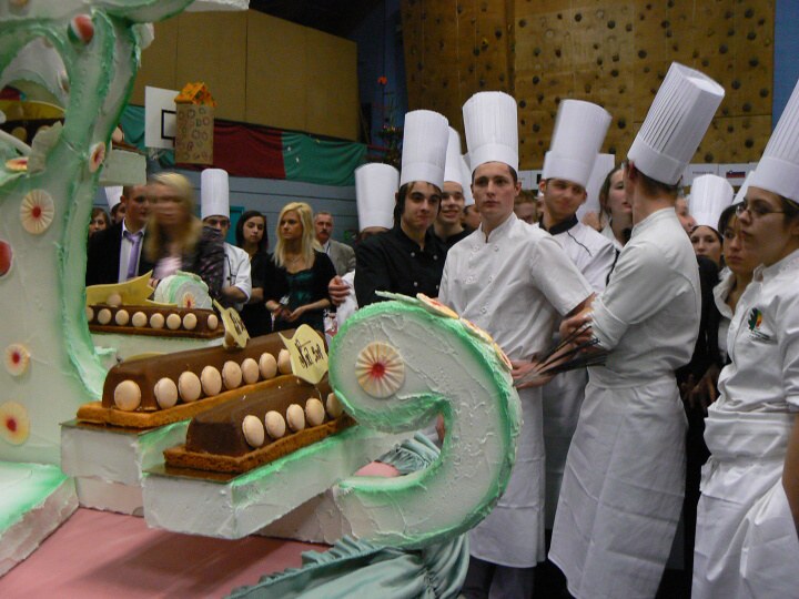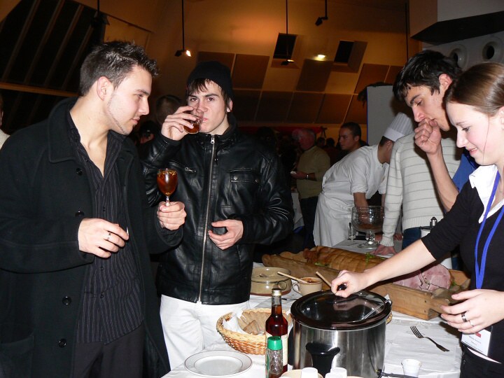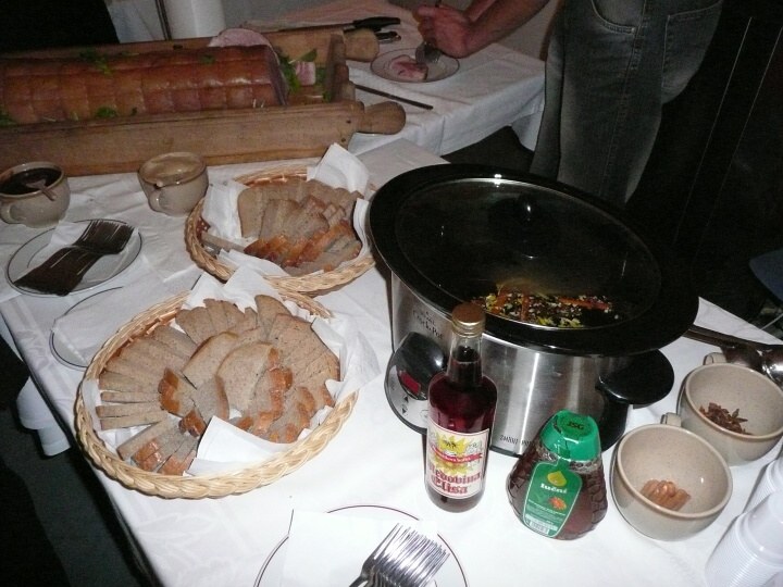 V pondělí jsme stále vystavovali až do odpoledních hodin. Navštívila nás spousta škol a školek. V šest hodin jsme stánek sbalili, vše uklidili a přesunuli se do školy na raut připravený společnými silami. Každá škola nachystala svou vánoční specialitu na rautovou tabuli. My jsme ostatním studentům nabídli sele se švestkovou omáčkou, křenem s jablky a k pití svařenou medovinu s kořením. Ochutnali jsme spoustu zajímavých národních pokrmů.