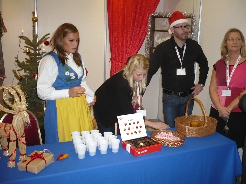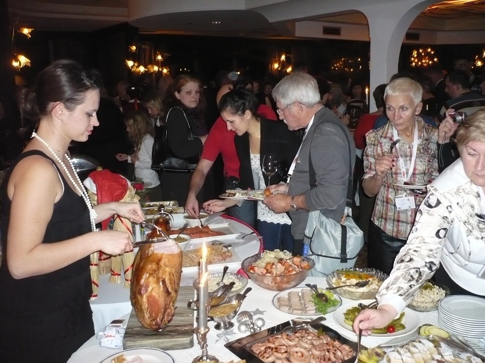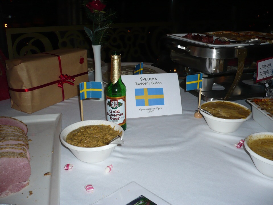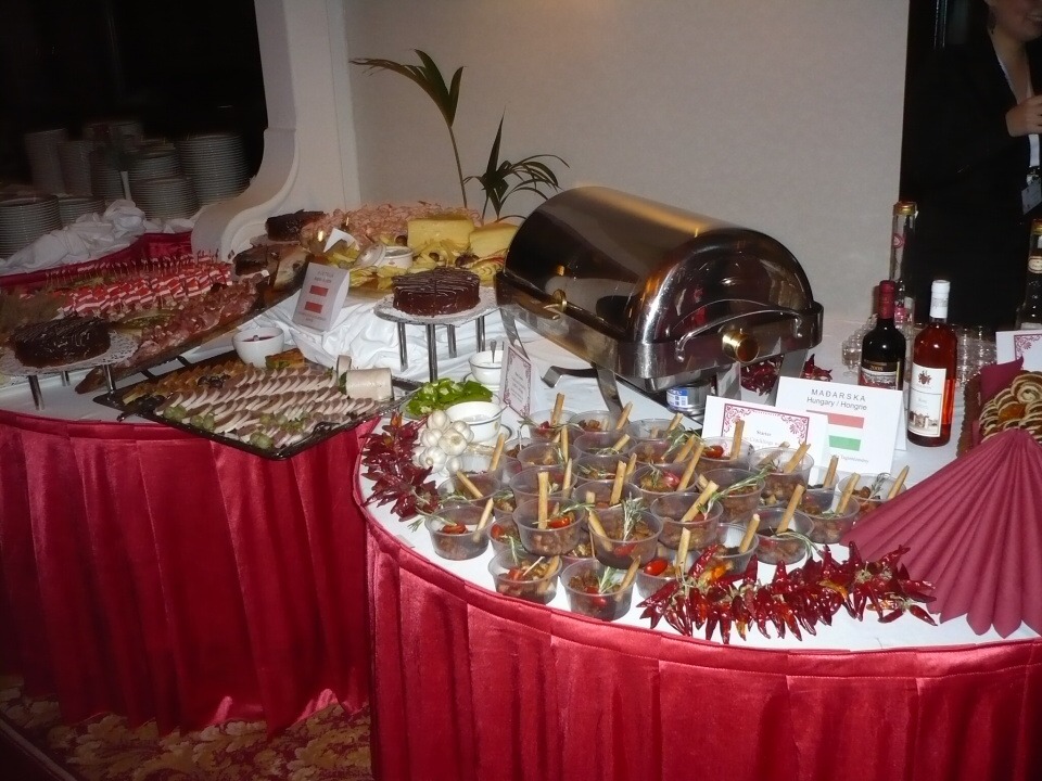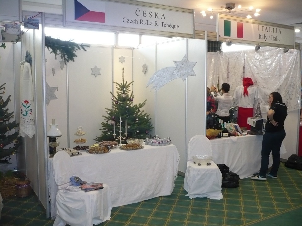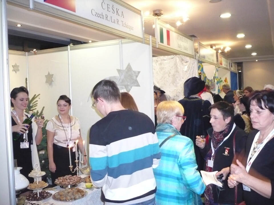 Na slavnostním rautu s nabídkou českých jídel, piva a becherovky jsme nejen doporučovali ty naše, ale i ochutnávali tradiční vánoční pokrmy a nápoje všech zemí a nechyběl ani kulturní program plný vánočních koled a národních tanců.