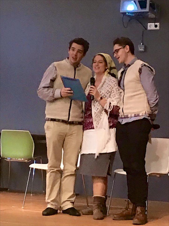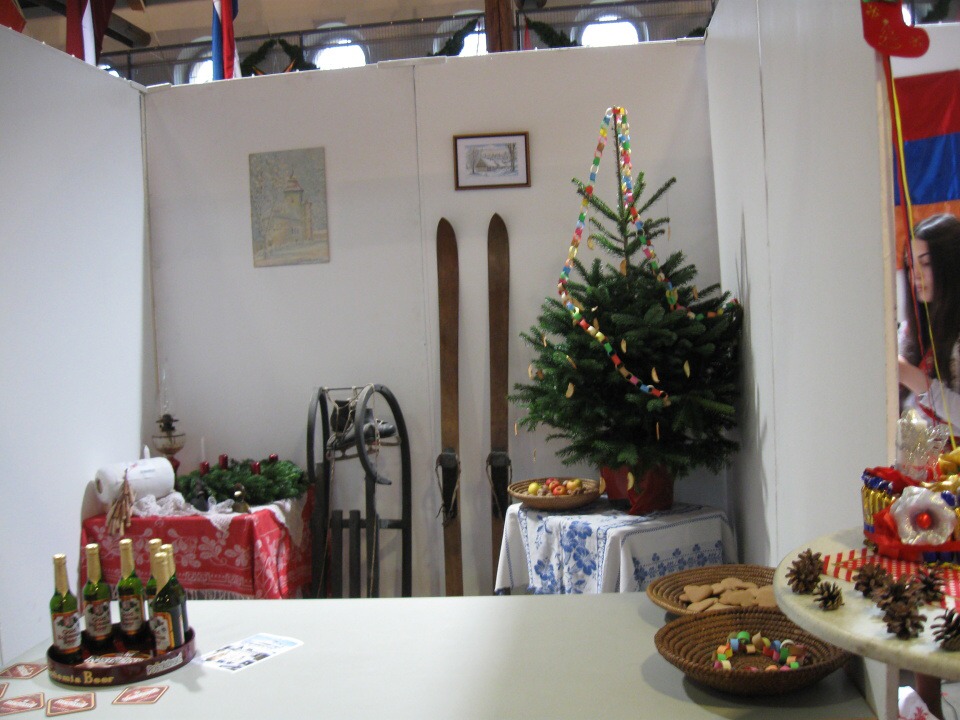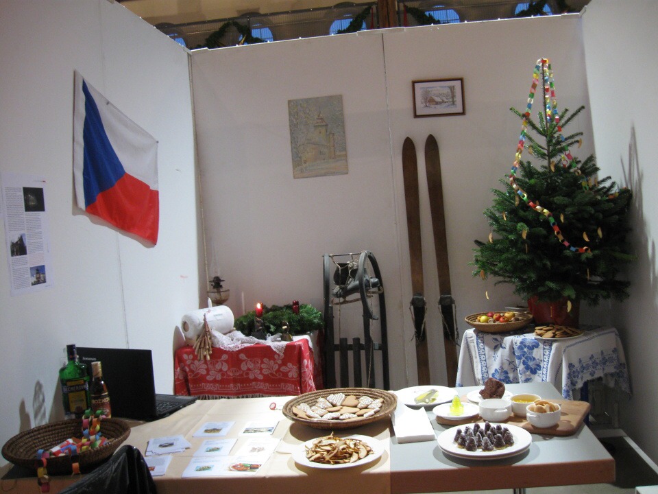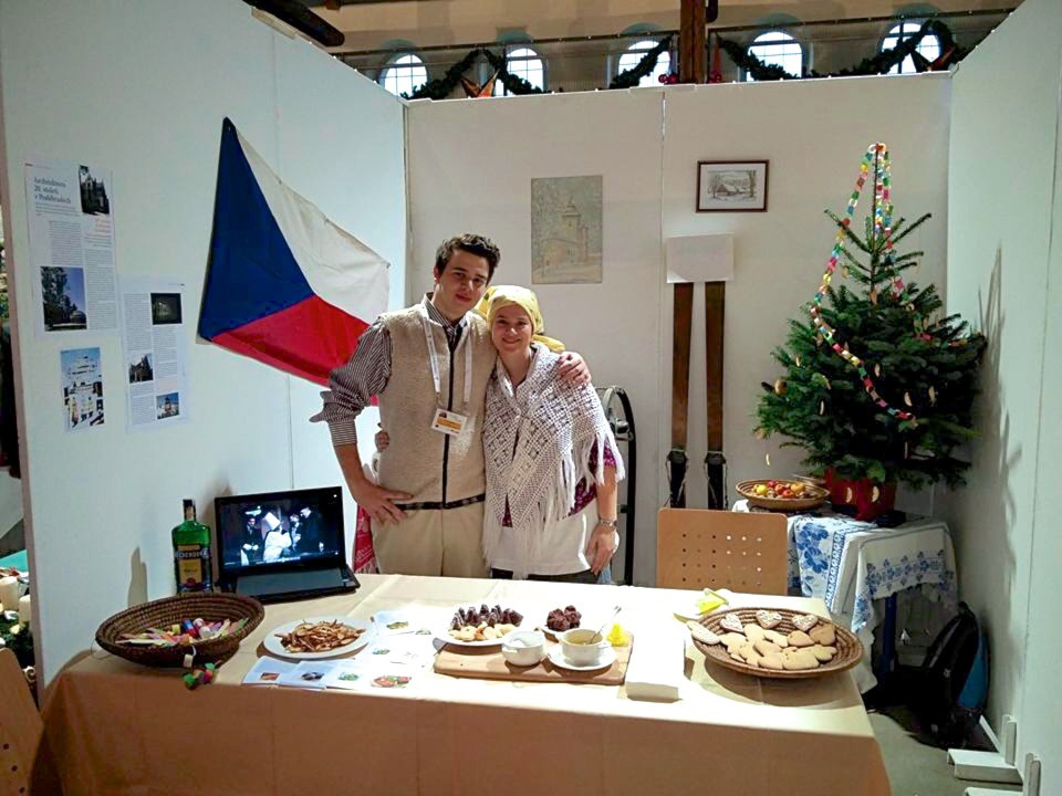 V neděli dopoledne jsme měli vyhrazený čas na úklid stánků a po obědě přišla na řadu kulturní prezentace buď o našich Vánocích, škole, nebo státu. My jsme vsadili na humor a s Petrem jsme anglicky mluvili o typickém Štědrém dni v České republice a Míša vše provedla v pantomimě. Na závěr jsme zazpívali koledu.