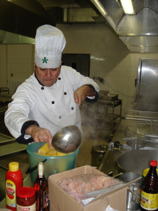 Naši „kluci“ se jmenovali Neyderman Giraldo a Gabriel Enrique Rojas a ve čtvrtek 20. listopadu spustili ve školní restauraci akci Den kolumbijské kuchyně. Ano, hádáte správně, byli až z daleké Kolumbie a k nám se dostali v rámci utužování partnerských vztahů mezi AEHT (Asociace evropských škol hotelnictví a turismu se sídlem v Lucembursku) a Servicio Nacional de Aprendizaje SENA se sídlem v kolumbijské Bogotě. Na výzvu AEHT se z členské základny přihlásily školy v Kodani, Irsku, italské Senigalii, portugalské Coimbře, v Marseille, v lucemburském Dielkirchu a naše poděbradská škola. Všechny zmíněné školy si rozebraly po jednom či po dvou studentech, pečlivě vybraných v konkursu, organizovaném SENA. Jak nám prozradil Neyderman, na stáž se hlásilo okolo čtyř tisíc studentů z celé Kolumbie a v několika kolech výběrového řízení uspěli jen ti nejlepší. Jak se Neyderman přiznal, taky zprávu o tom, že se podívá do Evropy, pořádně oslavil.